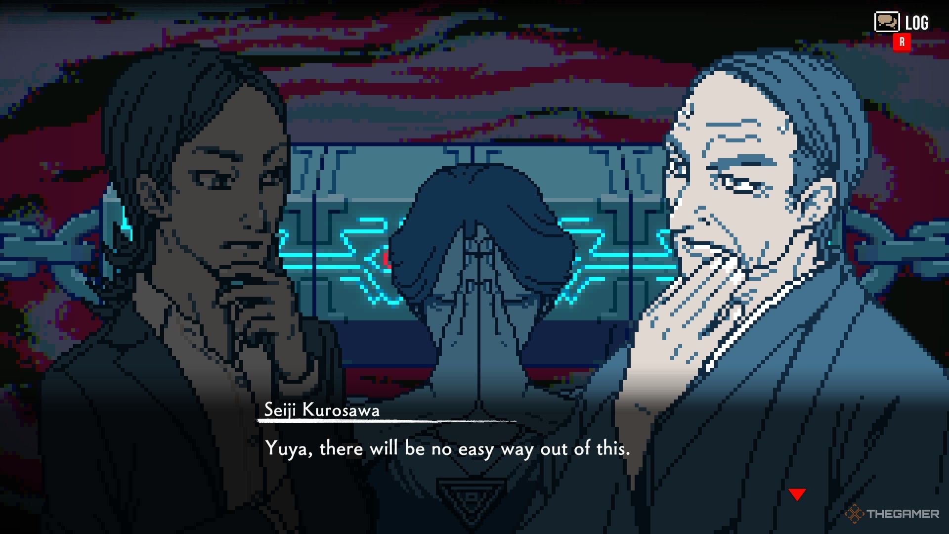 黒崎に話してくださいサーバーの内容について彼に尋ねます。それから、もう一度ナカタと話してくださいそして、5番目の手がかりを得るために「黒崎さんが許可を与えた」を選択します。部屋の右側までずっと行き、眼鏡をかけます。サーバーキャビネットの前の影の人物と対話する「検査」を選択します。