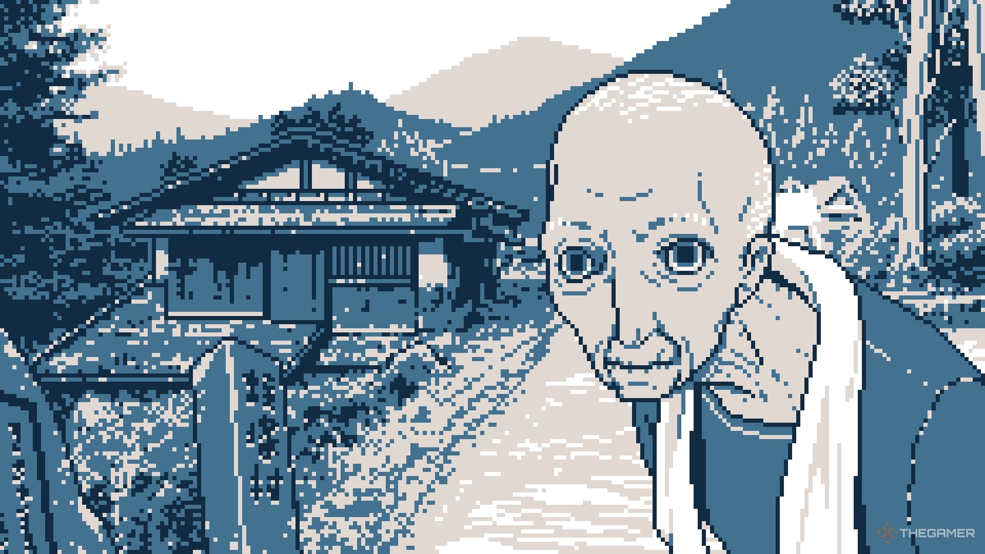もう一度ニシタニと話して、「ティーボウルを見せてください」を選択してください。これにより、hirutsuka村という名前が明らかになり、4番目の手がかりが与えられます。ついに、グラスをかけますと対話する: