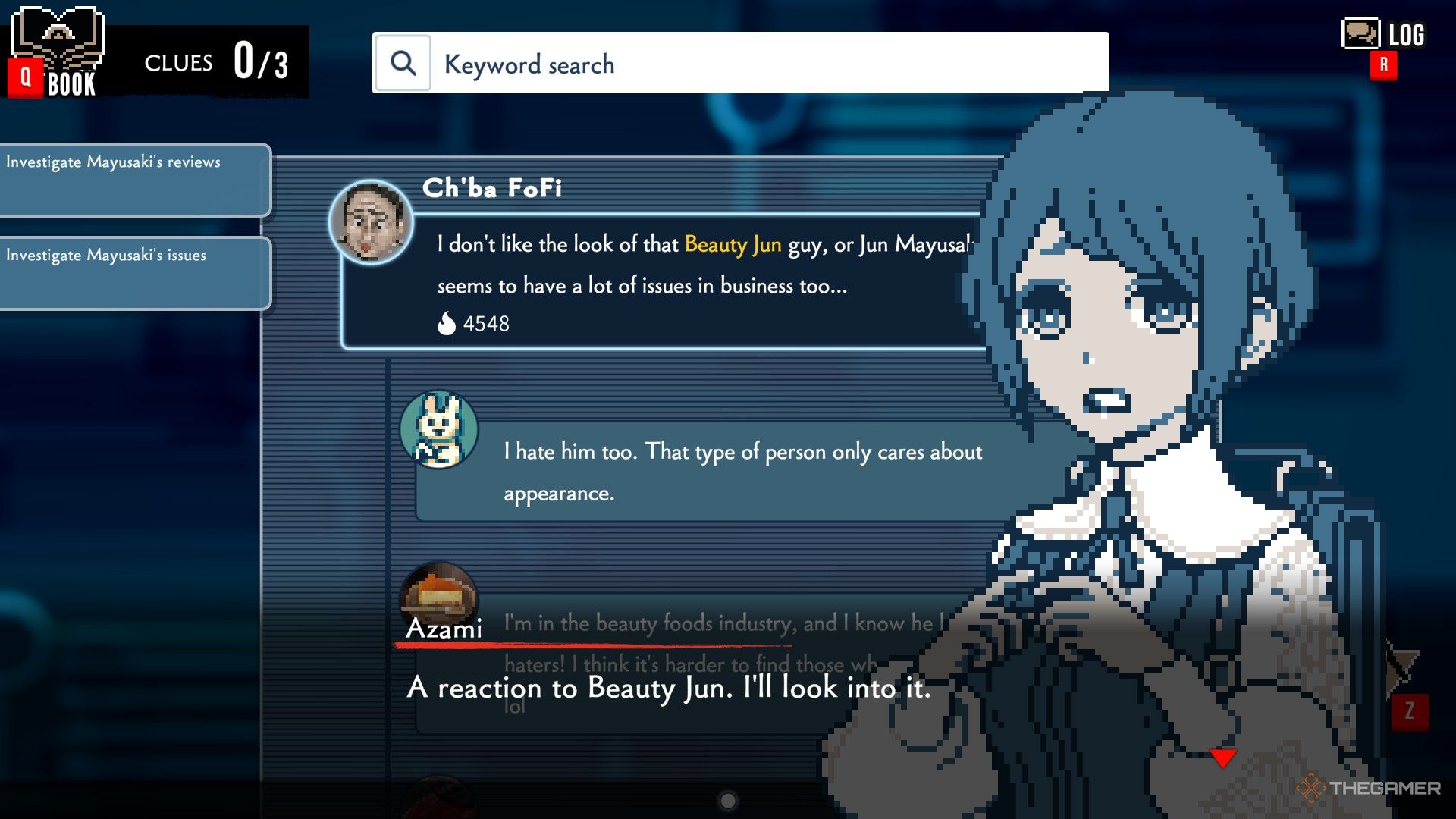 ソーシャルメディアの調査の後、アザミはマヤサキの家に到着します。ジャスミンと話をした後、8つの手がかりを見つける必要があります。