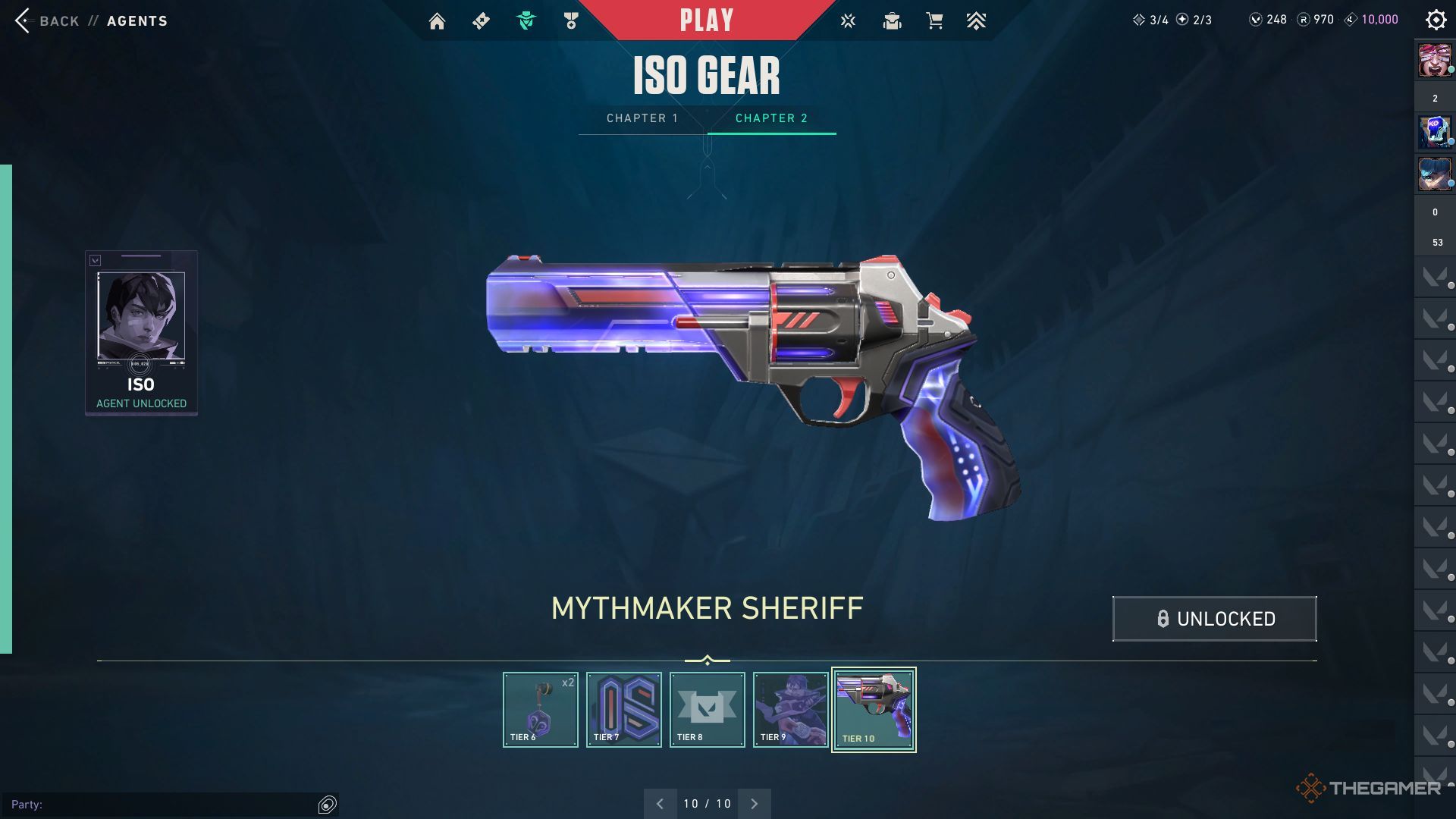 他のデュエリストとは異なり、ISOのエージェント契約には合計3つのアニメーション化された化粧品があります。これらには、ティア4、6、10の「ゾーンイン」スプレー、「周辺」のバディ、それぞれそれぞれ神話の保安官が含まれます。ただし、この契約の傑出したは簡単に神話上の保安官であり、ほとんどのバトルパススキンよりもライバルであり、さらには良く見えます。