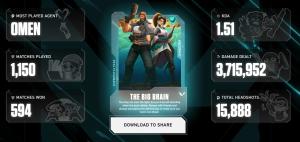 - KDA、ほとんどのプレイエージェント、ダメージを与えたダメージ、マッチウォン、プレイされた試合、および2024年にプレーしたマッチから収集されたトータルヘッドショットなど、統計の概要を生成します。