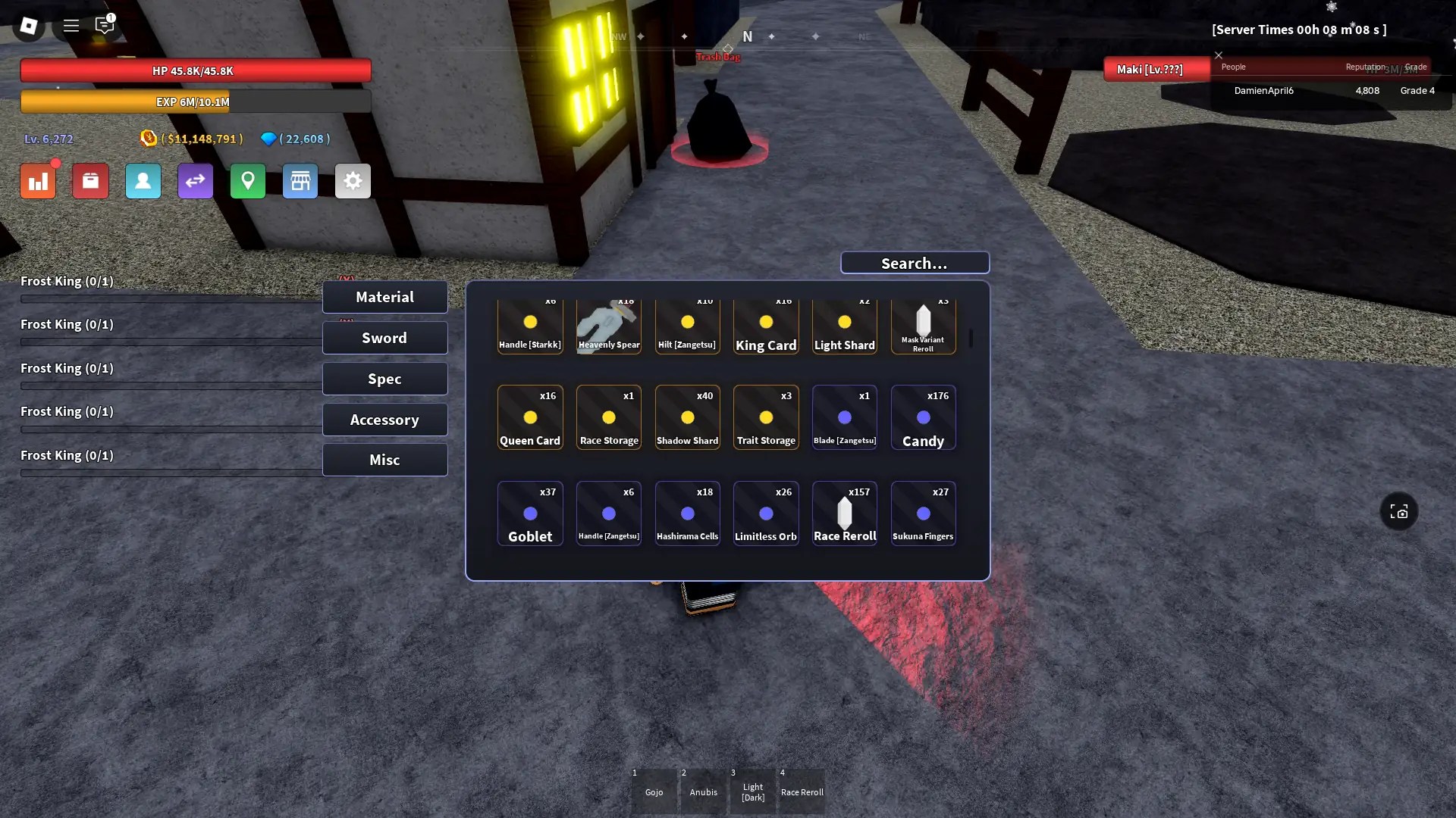 使用してレースを再編成できますレースリロール資料在庫から。再ロールするときは、伝説的、神話的、またはエキゾチックな人種を再ロールしたいかどうかを確認する必要があります。あなたはできるレースの再ロールを取得しますチェスト、釣り、取引、からの購入によってアドベンチャーショップ NPC、またはによって償還ヴァースピースコード。