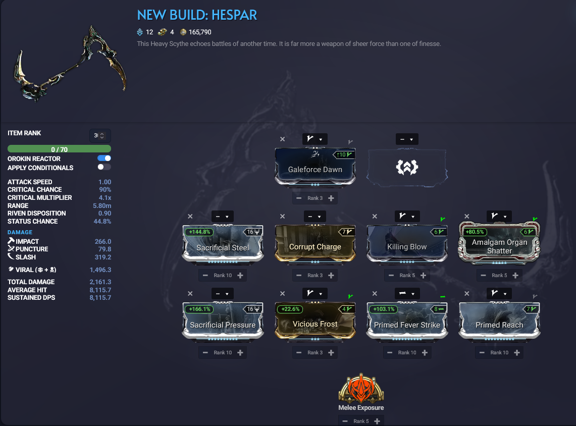 Hespar自体には、話すべきユニークなギミックや相乗効果はありません。それは鎌であるため、壊滅的なスラッシュプロセスのための重い攻撃ビルドまたは日常のコンテンツのためのより一般的な近接攻撃ビルドを選択できます。