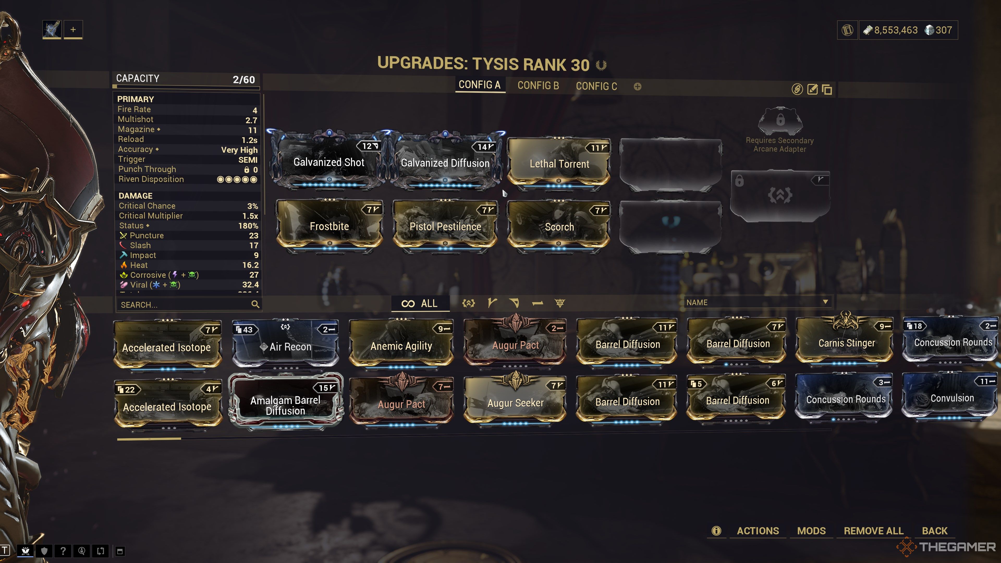 亜鉛メッキショットこのビルドで最も強力なmodであり、ターゲットのステータスの病気からベースダメージをスケーリングします。次に、3つのElemental Modを使用します。選択しますが、それらが要素/ステータスハイブリッドMODであることを確認してください凍傷そしてスコーチ- この武器に幅広いダメージタイプを与える。いくつかのマルチショットを投げます亜鉛メッキ拡散そして致命的な急流、そして今、視力は数秒で数十のステータスの病気を与えることができます。