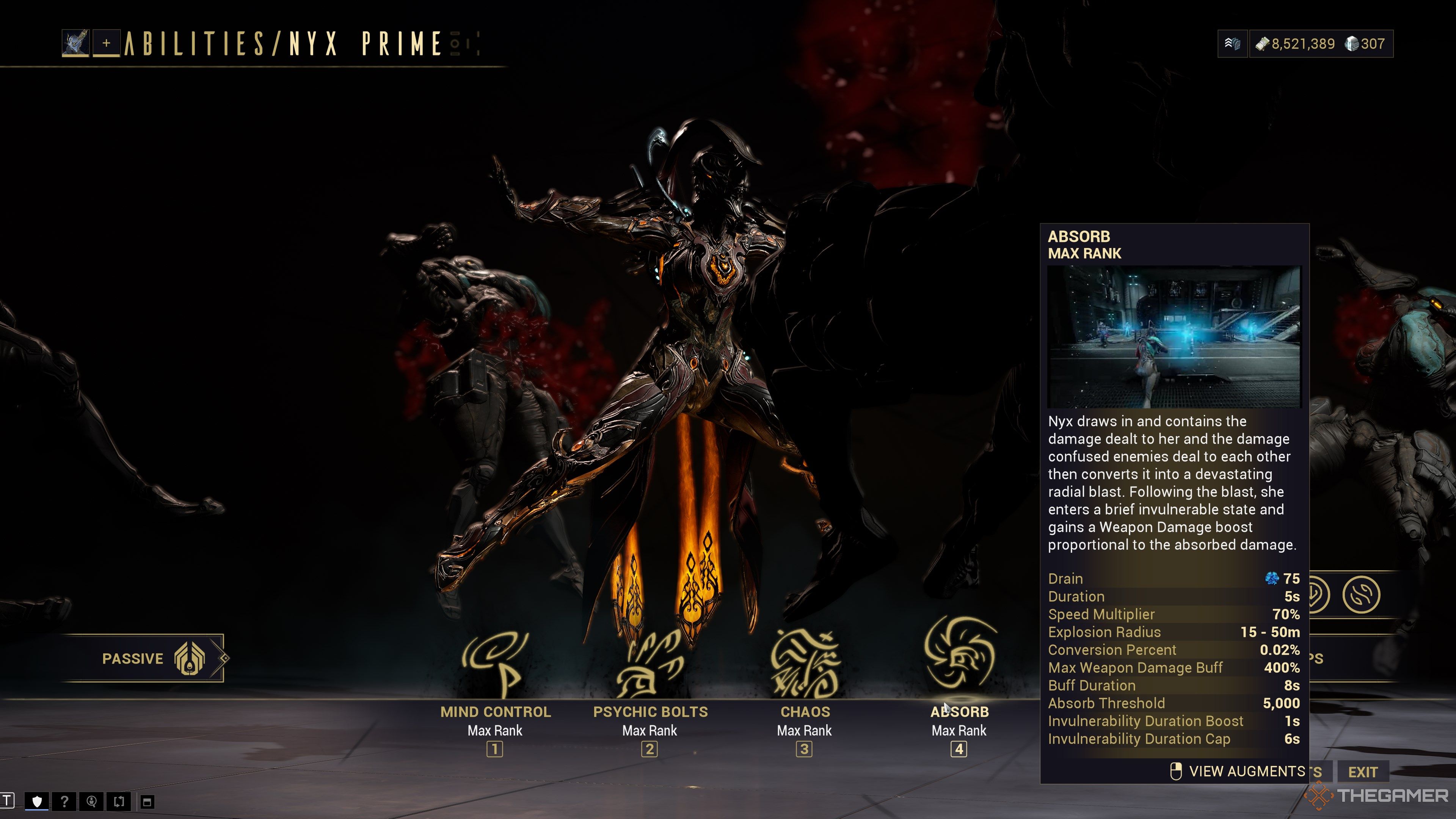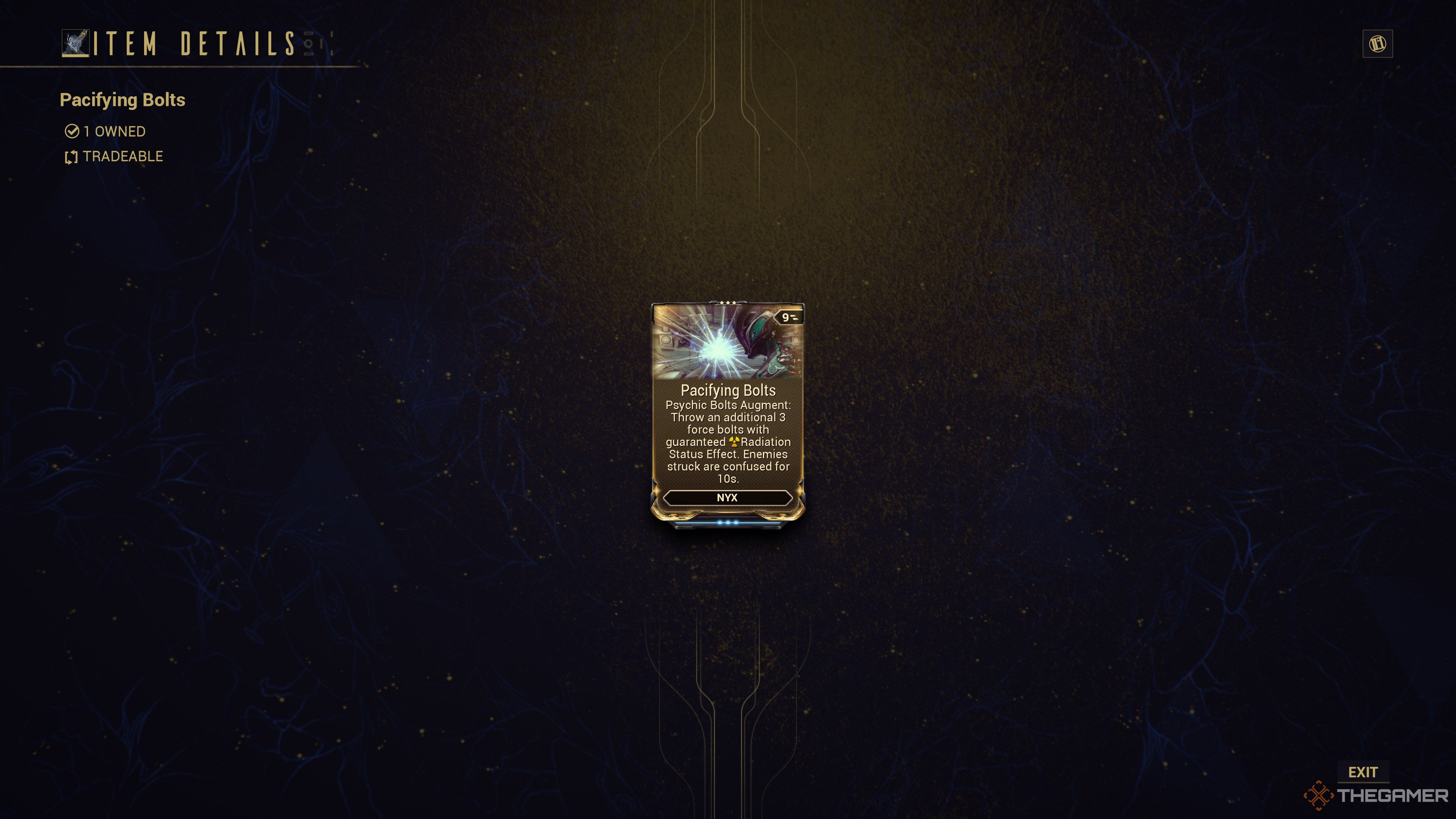 NYXは、彼女のスキルのために5つのAugment Modにアクセスできます。そのほとんどは、それらを完全にオーバーホールするのではなく、彼女の能力の機能を強化します。これらのmodのほとんどは、から取得されますヘキシスのarbitersまたは新しいロカ 25,000人の立場。これらのmodを購入するには、どちらのシンジケートでも最大ランクにいる必要があります。または、プレイヤートレーディングを使用して、仲間のテノからこれらのmodを取得することもできます。
