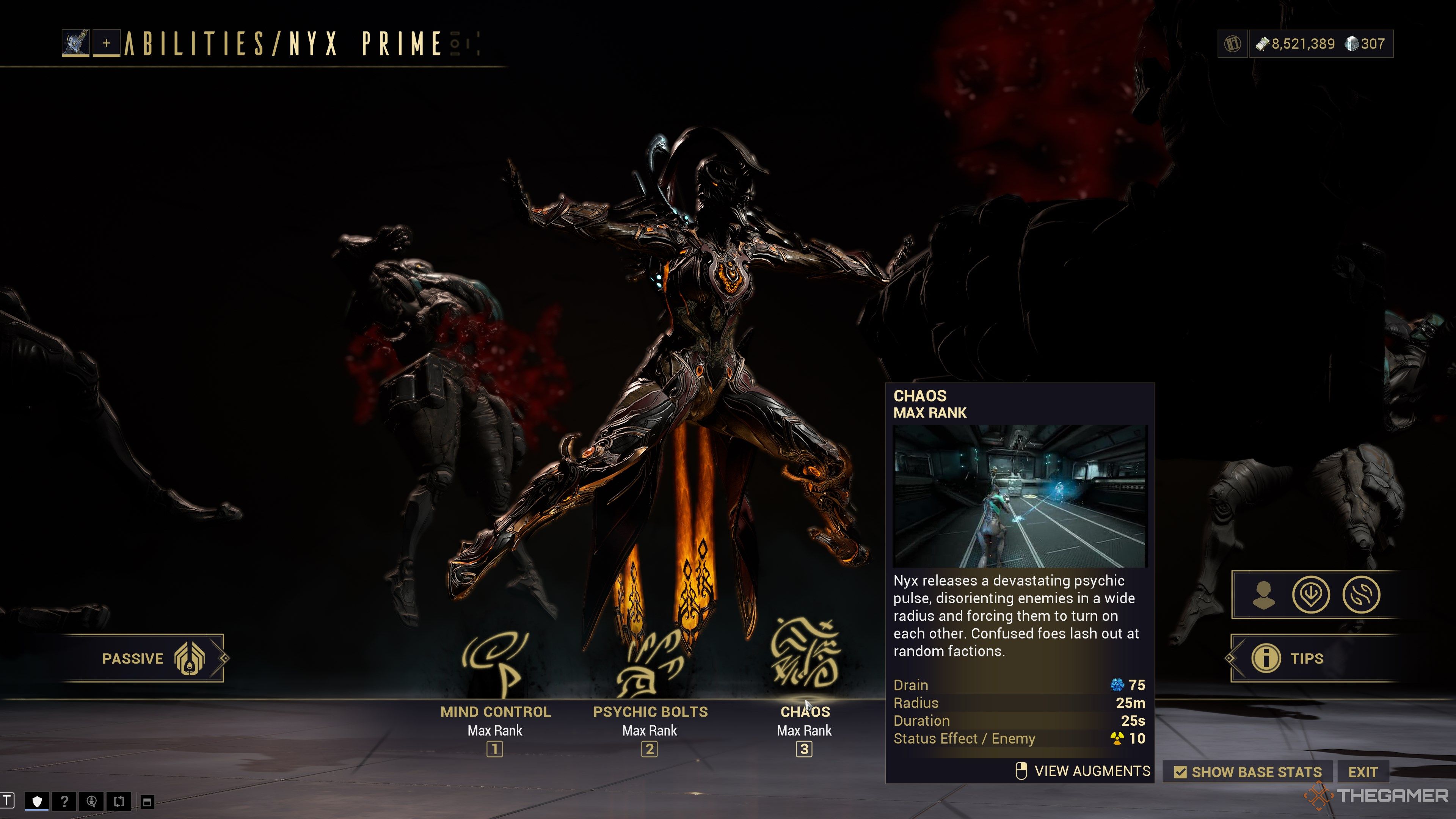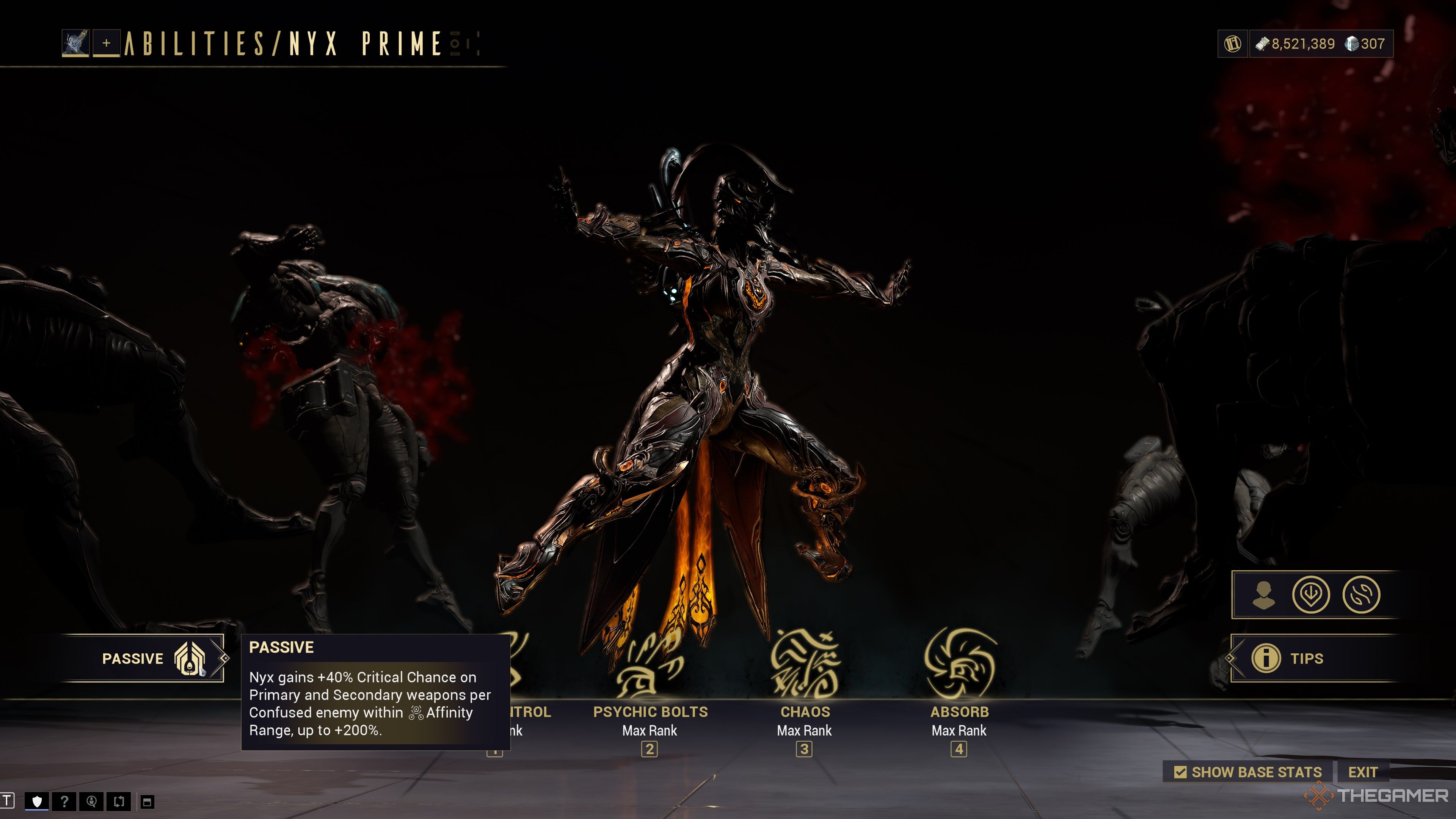 NYXの能力のほとんどが生じます混乱、敵を互いに戦わせるデバフ。この効果に基づく各敵は、銃に最大+200%の重要なチャンスボーナスを与えます。このボーナスは、Pistol GambitやPoint Strikeなどの他のMODに加えています。