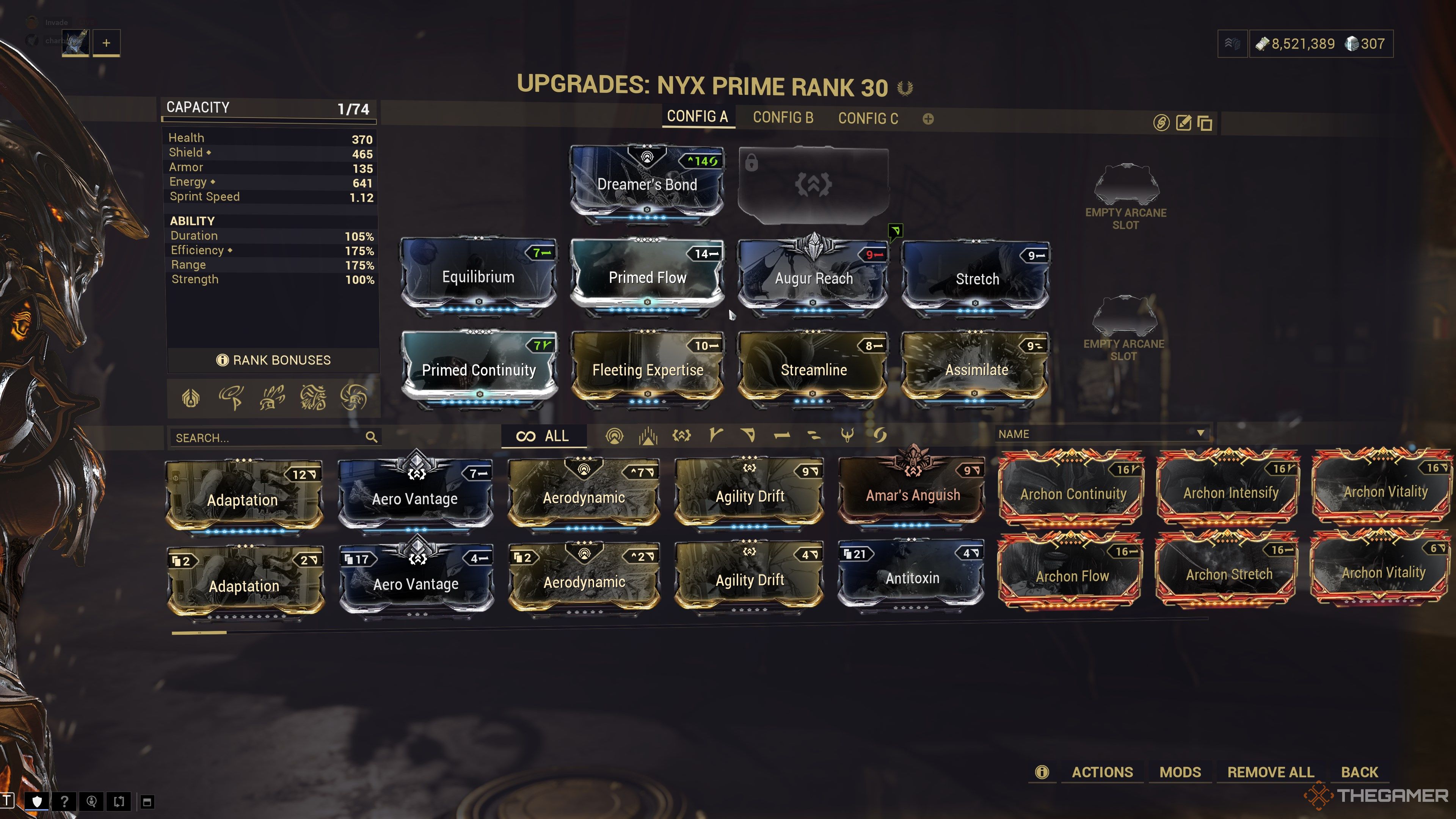 それは簡単に達成できます平衡、ヘルスオーブを拾ってエネルギーを獲得し、その逆も同様です。プライミングフローエネルギーリザーブといくつかの効率的なMODを増やします - つかの間の専門知識と合理化- 175の効率キャップを確実に押します。使用プライミングされた連続性または、期間ペナルティを最小限に抑える標準バージョン。