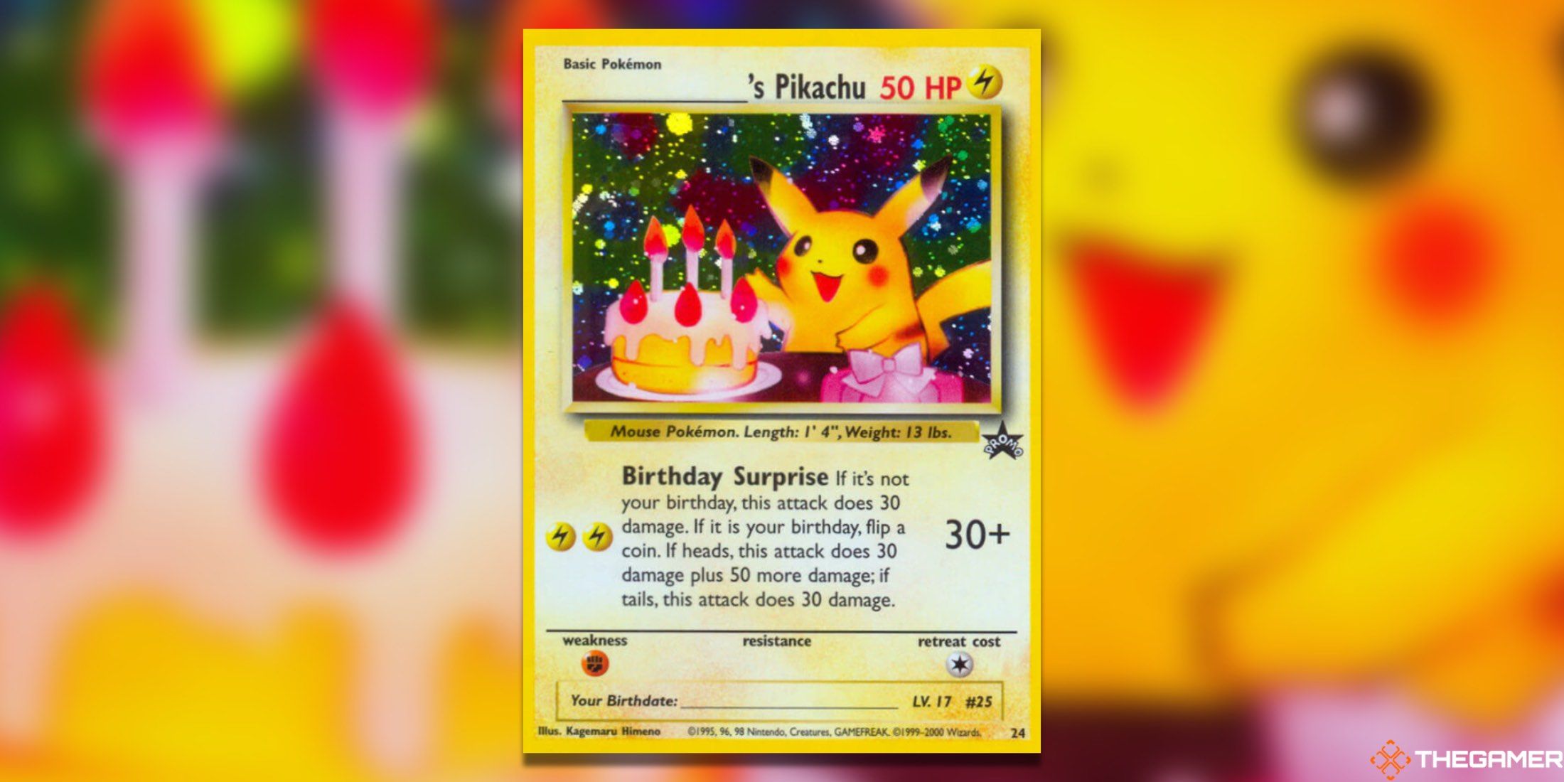 あなたはおそらくこの空白のピカチュウカードを見たことがありますが、その名前はあなた自身のものを埋めるために意図的に開いたままにして、あなたのピカチュウ(これもあなたにおいしい誕生日ケーキを提供するためにここにあります)と主張しています。 Happy Birthday Pikachuとしても知られているこのカードは、もともとCreate-a-Cardキャンペーンの一環として、入力され、海岸のウィザードに戻ることを目的としていました。