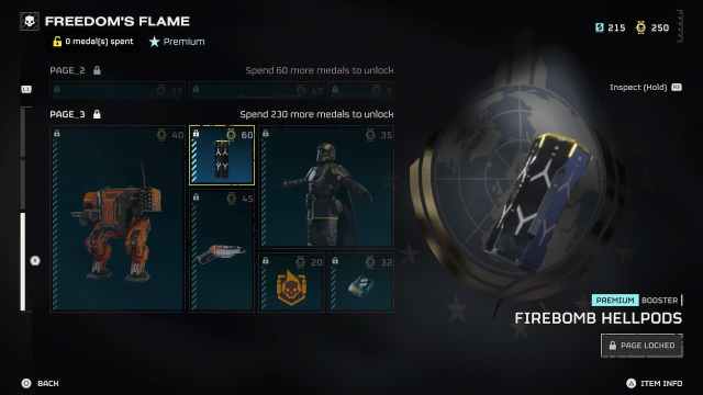 Firebomb Hellpodsブースターコスト60のメダル自由の炎のウォーボンドの3番目のページから取得できます。 Freedom's Flameはプレミアムウォーボンドです。つまり、1,000のスーパークレジットまたは9.99ドルで購入できます。