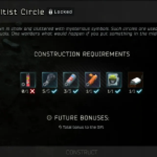 カルトサークルは、隠れ家の構造可能な領域であり、次の素材を必要とします。