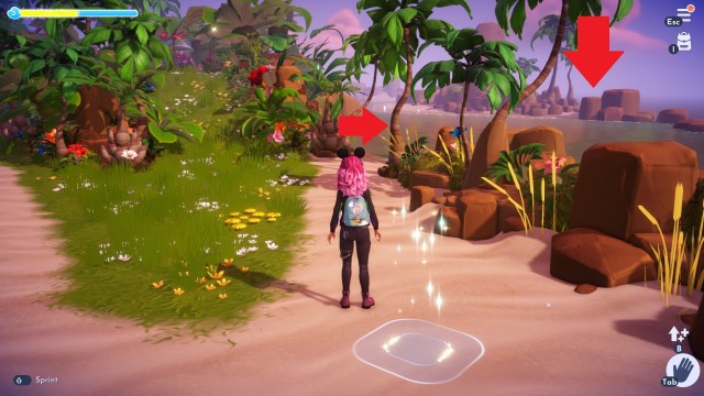Moana Realmに向かうことから始めます。あなたが入る場所から、右に曲がる前に少し前に歩いて、2つのヤシの木の間にギャップがあります。