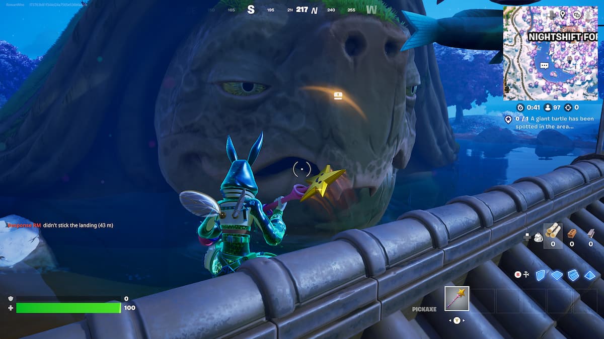巨大なタートルは、最初はワッフェの南東の沼地にあり、次に島の周りにあり、ランダムな場所に現れました。彼はシーズンの残りの間島をツアーしているようで、試合ごとに別の場所にいます。