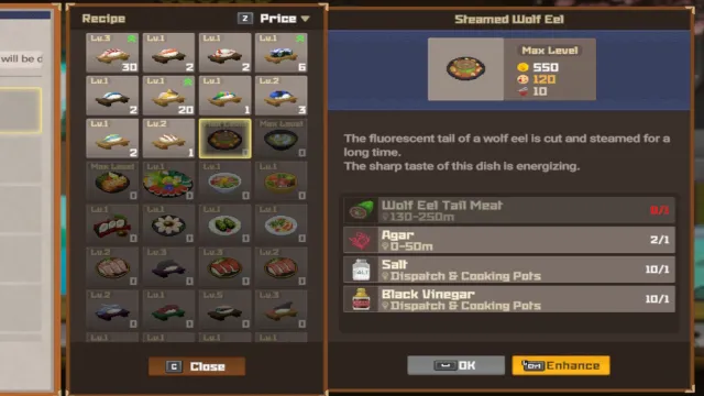 寿司バーのメニューをいつでもチェックして、必要な材料を確認できることを忘れないでください。リストを下にスクロールして、マルチアイテムのレシピを表示します。メニューには、各成分を見つけることができる深さを手持ちしているため、優れた研究ツールです。