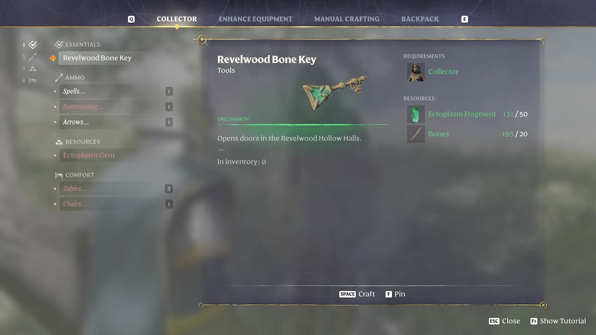 このダンジョンにアクセスするには、すべての将来の中空ホールと同様に、キーを作成する必要があります。これを作成して、コレクターと話すことができます。地図の北西部分に入り口があります。洞窟通路の西に目を向けるか、最も北のシュラウドルートマーカーから南西に向かってください。