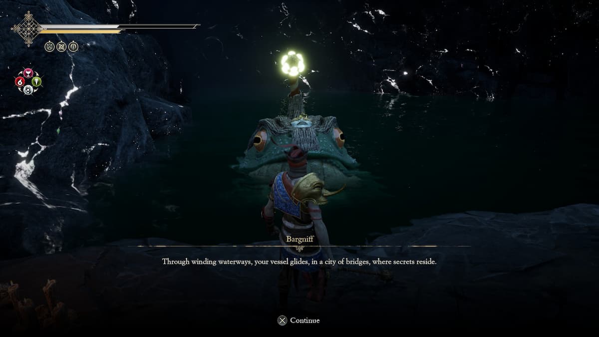 あなたがトラバースしたい右側に棚があり、それがBargniffが現れるように促します。彼と話すために下のプラットフォームにドロップダウンします。