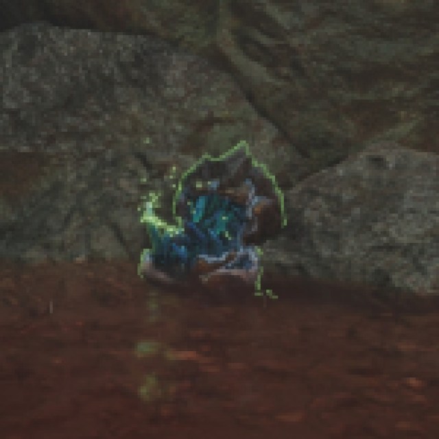Firestoneに出くわす最も一般的なエリアは油井流域の露頭を採掘します、あなたがそれを見つけるでしょう詳細なマップ。ただし、床に横たわっているのではなく、岩のような構造の壁の側面にあり、青色の結晶が中に成長しています。それらはまれであり、あなたはそれらを油ウェル盆地で見つける機会しかありません。