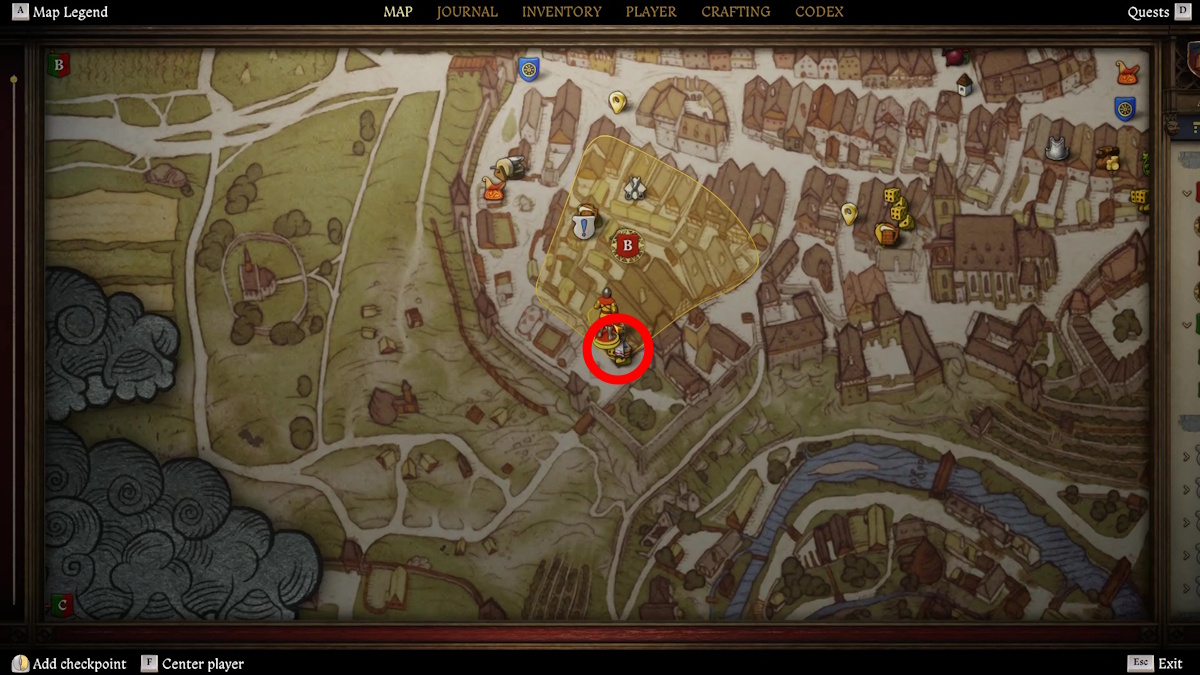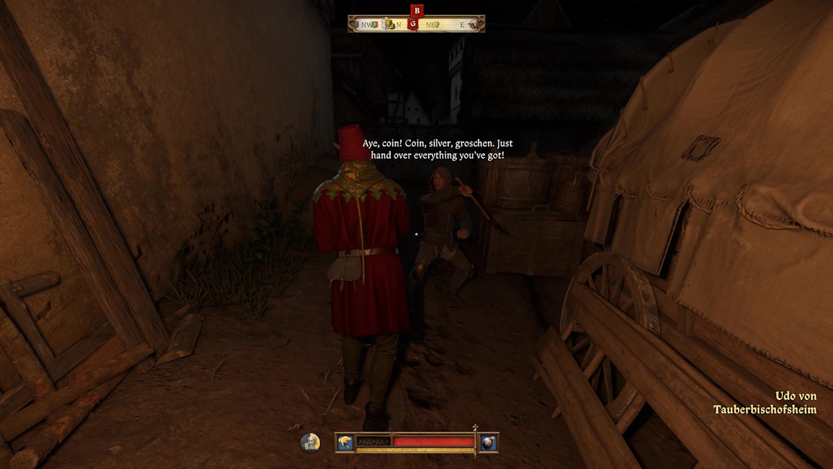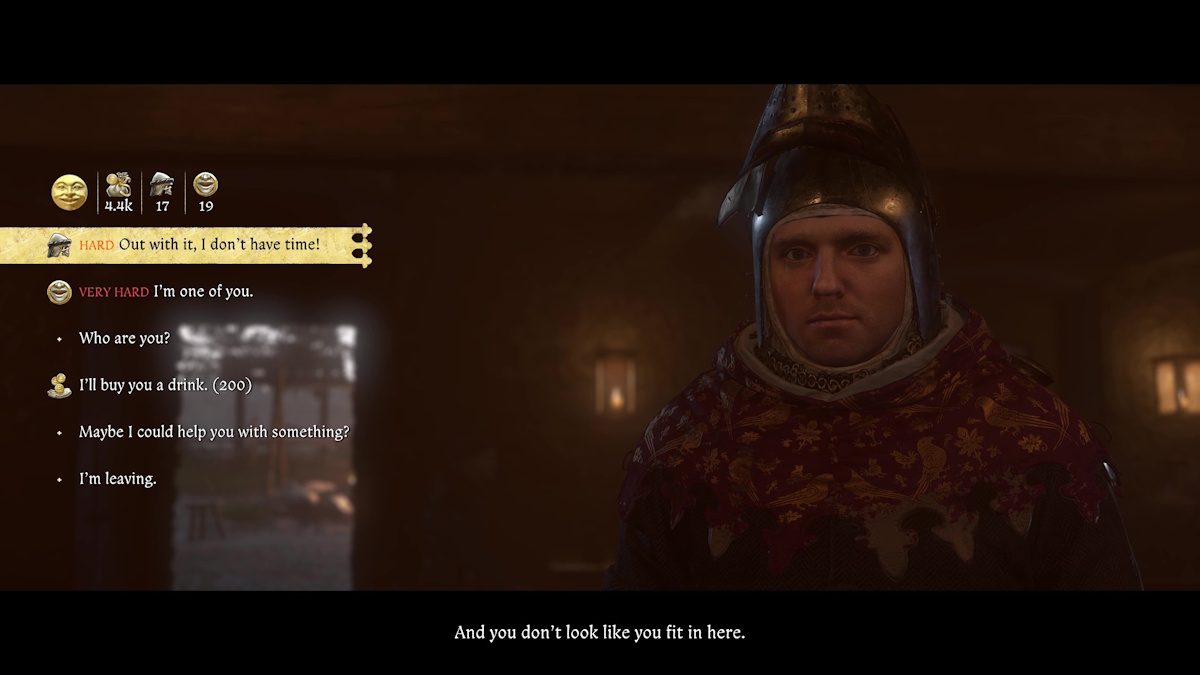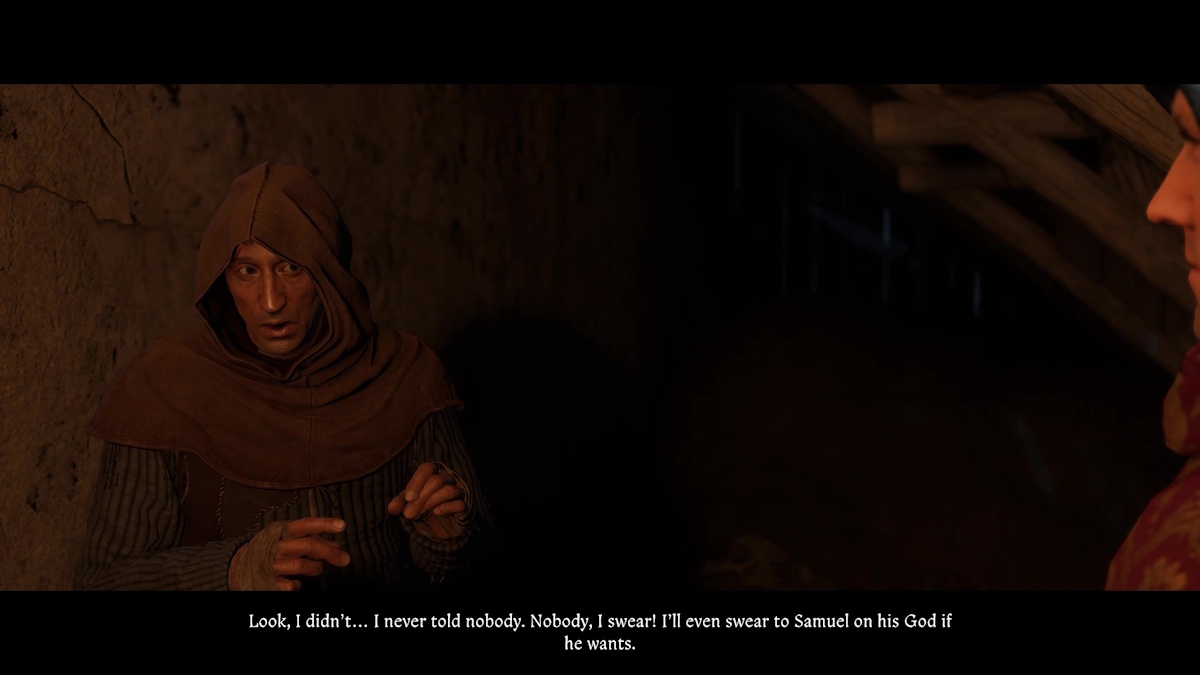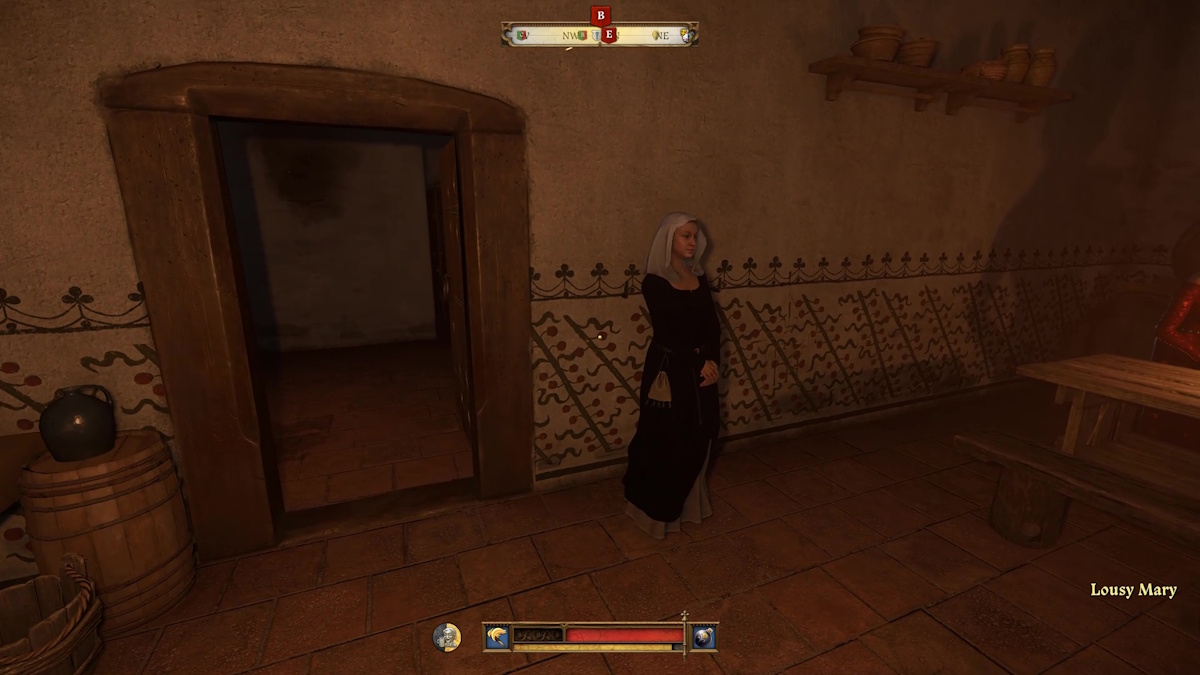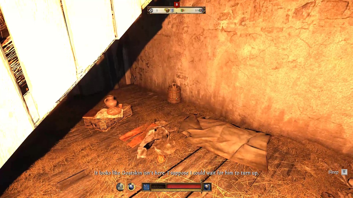 ヘンリーは、逮捕されたハンス・カポンを解放するのを助けることができるかもしれないリヒテンシュタインという名の貴族を探しています。リヒテンシュタインについてキャサリンに話しかけると、彼女は未知の貴族のスパイとして働いているゴートキンについて言及します。彼の雇用主は私たちの友好的な貴族に関係している可能性があります。それはヘンリーの唯一のリードであり、彼はそれに従うことにしました。キャサリンは周りに尋ねることを提案します壁の居酒屋の穴、ヤギ皮が彼のスパイギグのために得た現金をフラッシュしているのを見た。