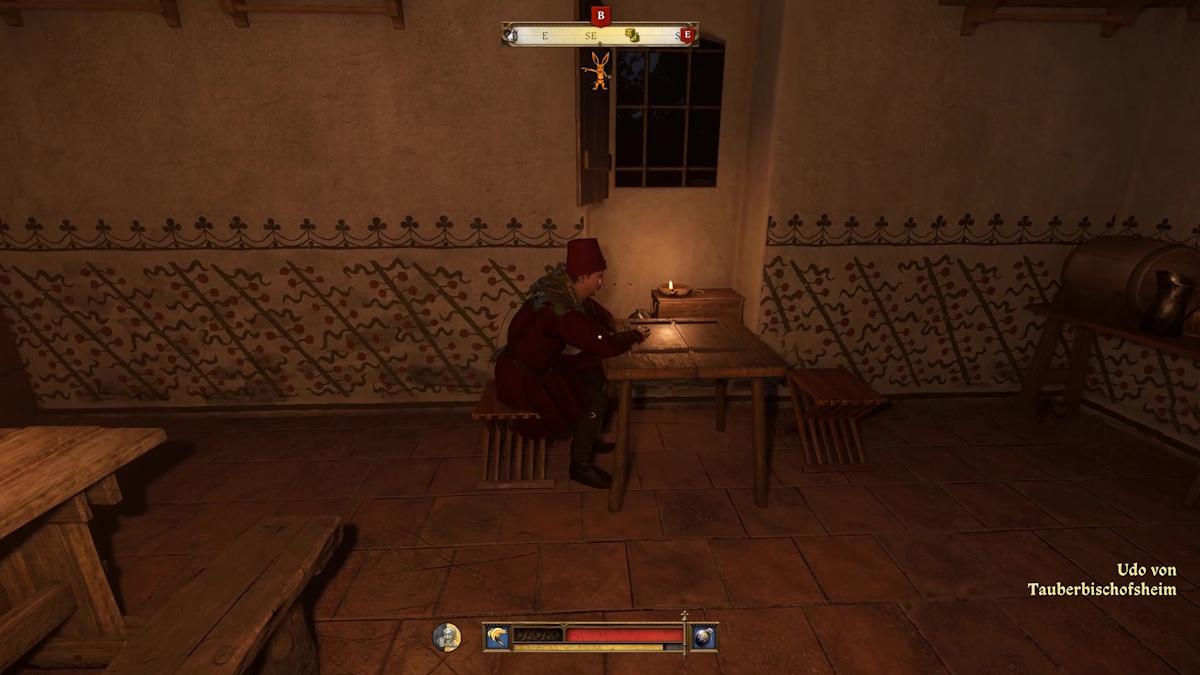 浴場の数人の従業員があなたを助けることができます。浴場のマダム・ビータは、Goatskinが顧客、特にドイツの商人をターゲットにしていることを確認しています。実際、ドイツの商人が現在浴場にいます。酔ってサイコロを演奏するのを楽しんでいるウド。