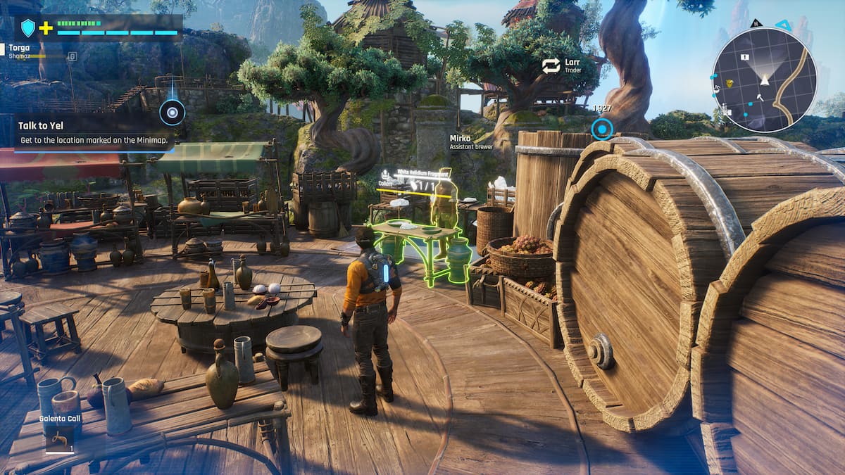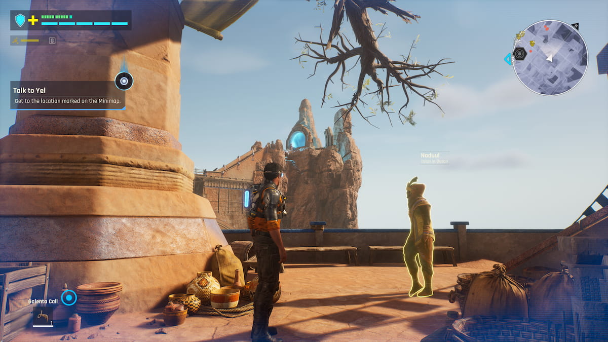 デサンはナビゲートするのが難しい場所ですが、ナドゥルのタロン村人に巻物を見つけることができます。ありがたいことに、彼に到達するには、直接飛ぶだけですDaoka Fast Travel Pointの左下。彼はaで前後にペースを合わせていますカラフルなバナーを備えたバルコニー。