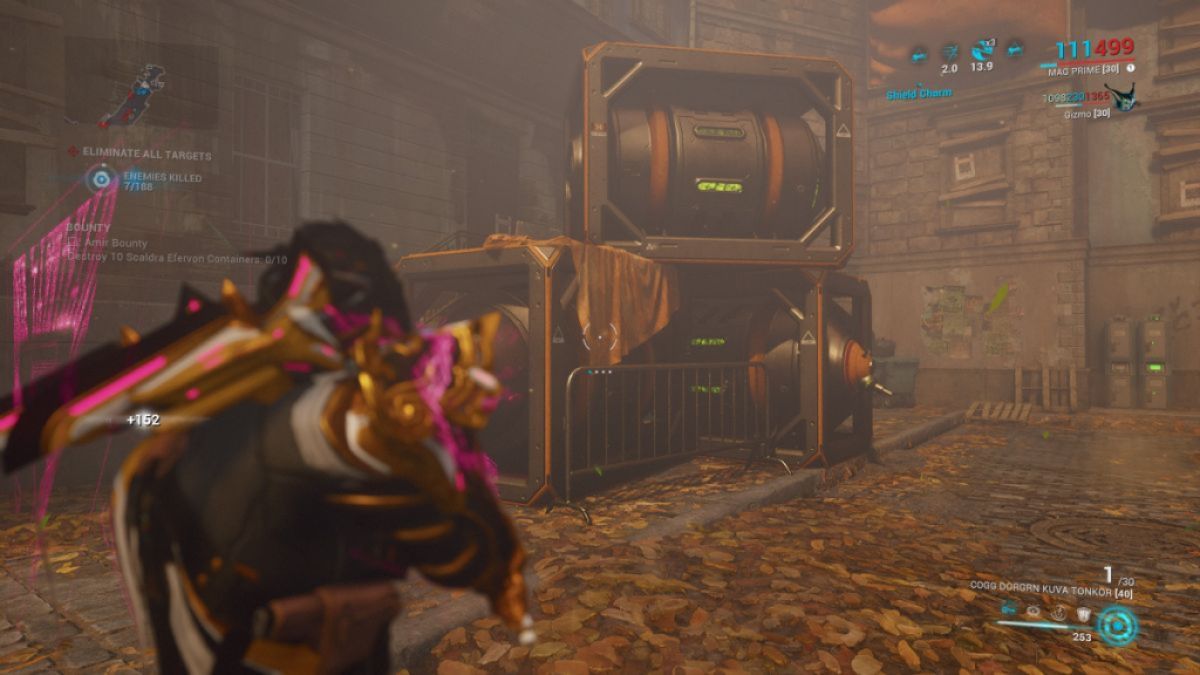 たとえば、私はこれらのコンテナの10個を破壊するように任されているスチールパスエンターミネートミッションをプレイしています。マギスタのようなエリアオブ効果の武器を重いスラムに使用しているので、コンテナを簡単に壊すことができます。それは壁を通り抜け、大きな放射状効果を持っているので、私は簡単にこれを成し遂げることができます。