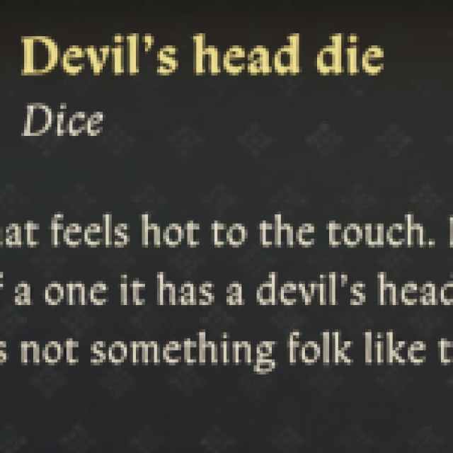悪魔の頭の死は、王国のユニークなダイです。プレイヤーは、組み合わせに必要な欠落している数に収まる側として機能するため、テーブルに配置された他のサイコロと組み合わせることにより、プレイヤーを戦略的に利用できます。