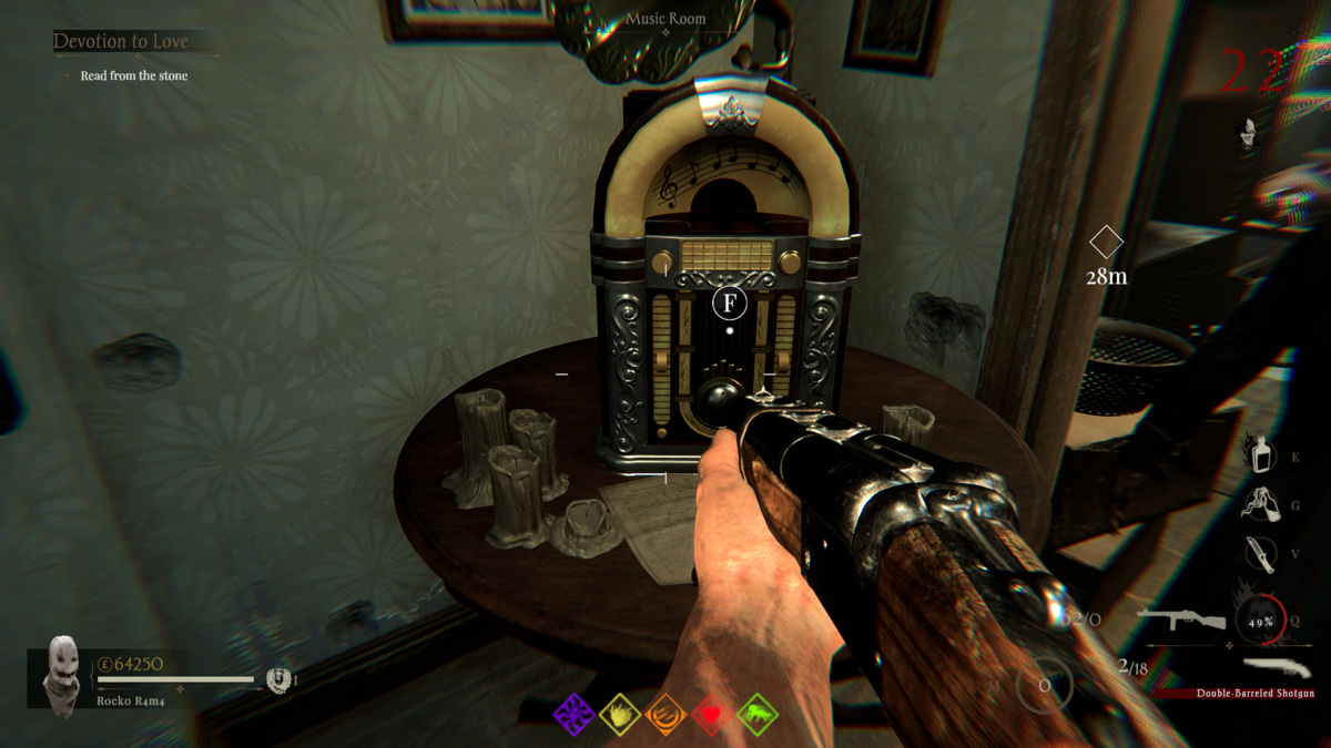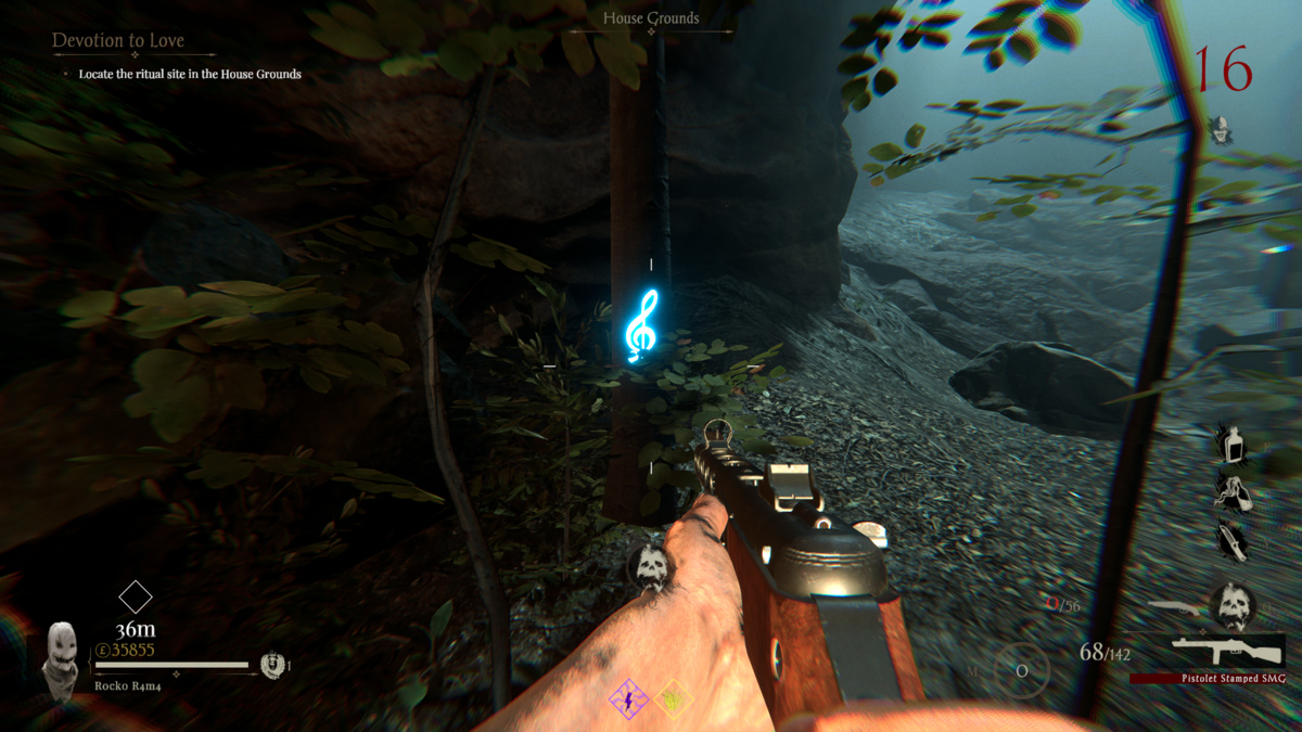 ここからは、音声ラインをスパムすることで、House of the Damned Mapの他のメモを見つける必要があります。私が照らされていない音楽のノートを見た典型的な場所は、地下室に通じる階段、吊り下げ式の体の上の部屋、ピアノの隣の、ライフマシンのエリキシル、切断された豚の隣の、吊り下げ式の死体の「拷問」という言葉、そしてキャビネットとタエルのラックの浴槽の上にあります。ただし、最後のメモが見つからない場合は、次のステップに移動するように指示する音楽のキューが聞こえるまで、同じ音の音声ラインボタンをスパムするだけです。