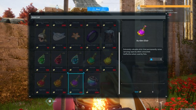 | ここのエリクサー | プレーヤーの容量を永久に引き上げます | 350犬の硬貨 |