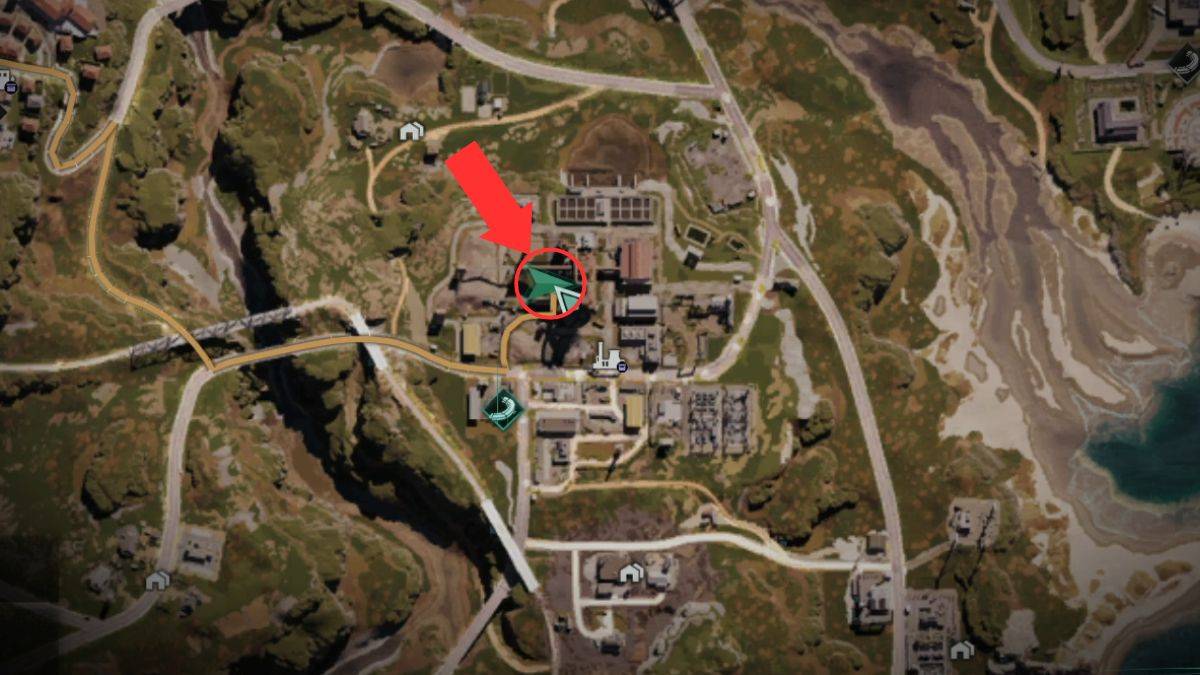 上記のスクリーンショットに示されている複合施設の中心近くに大きな構造があり、そこに行きたいです。マップ上の場所は、以下のスクリーンショットに示されているように、ほぼ示しています。