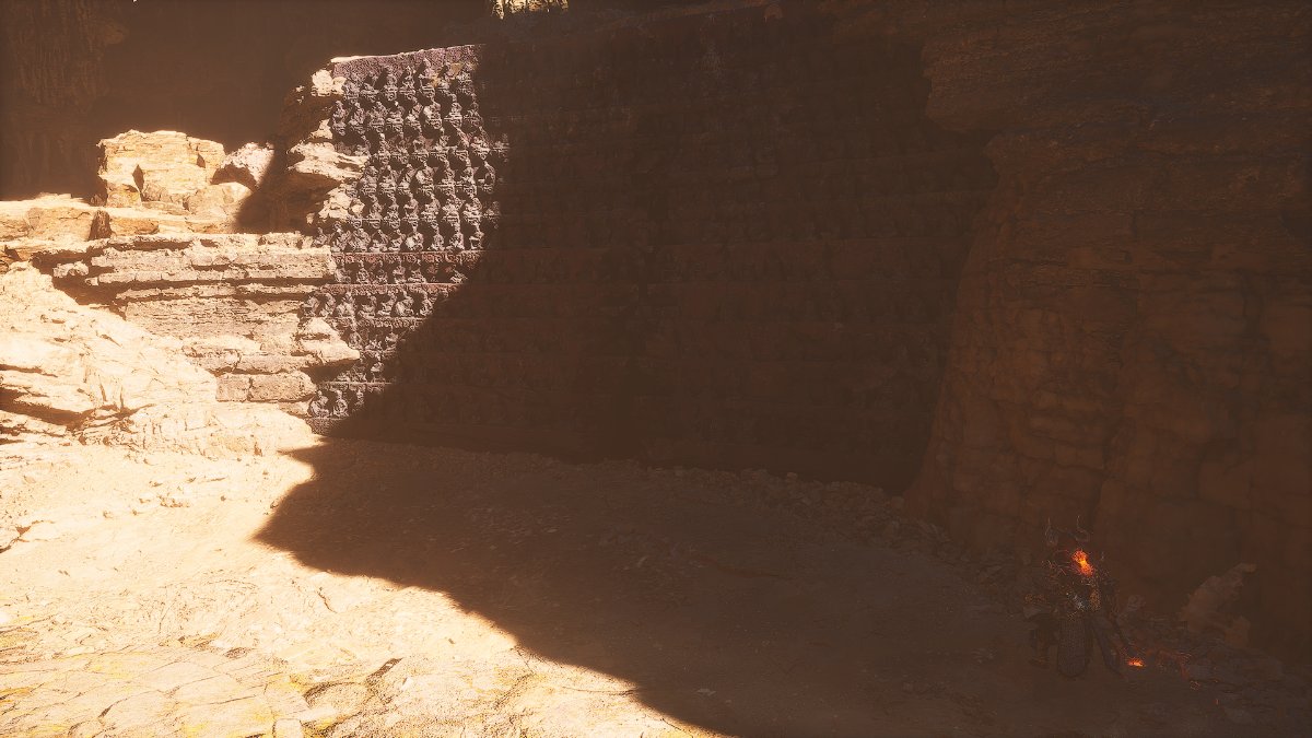 絶望神社の谷の近くのボスアリーナに行きます。神社の隣に立っているときにアリーナを開催する洞窟の入り口を見ることができます。近くの最大の洞窟を探してください。次に、Azure Dust Transformation Spellを使用します(他のスピリットや変換も機能する可能性があります)。装飾された黒と赤の壁の隣に立っている間に呪文を無効にすることにより、スラム攻撃をトリガーします。壁の内側にはゆっくりとした鱗があります。