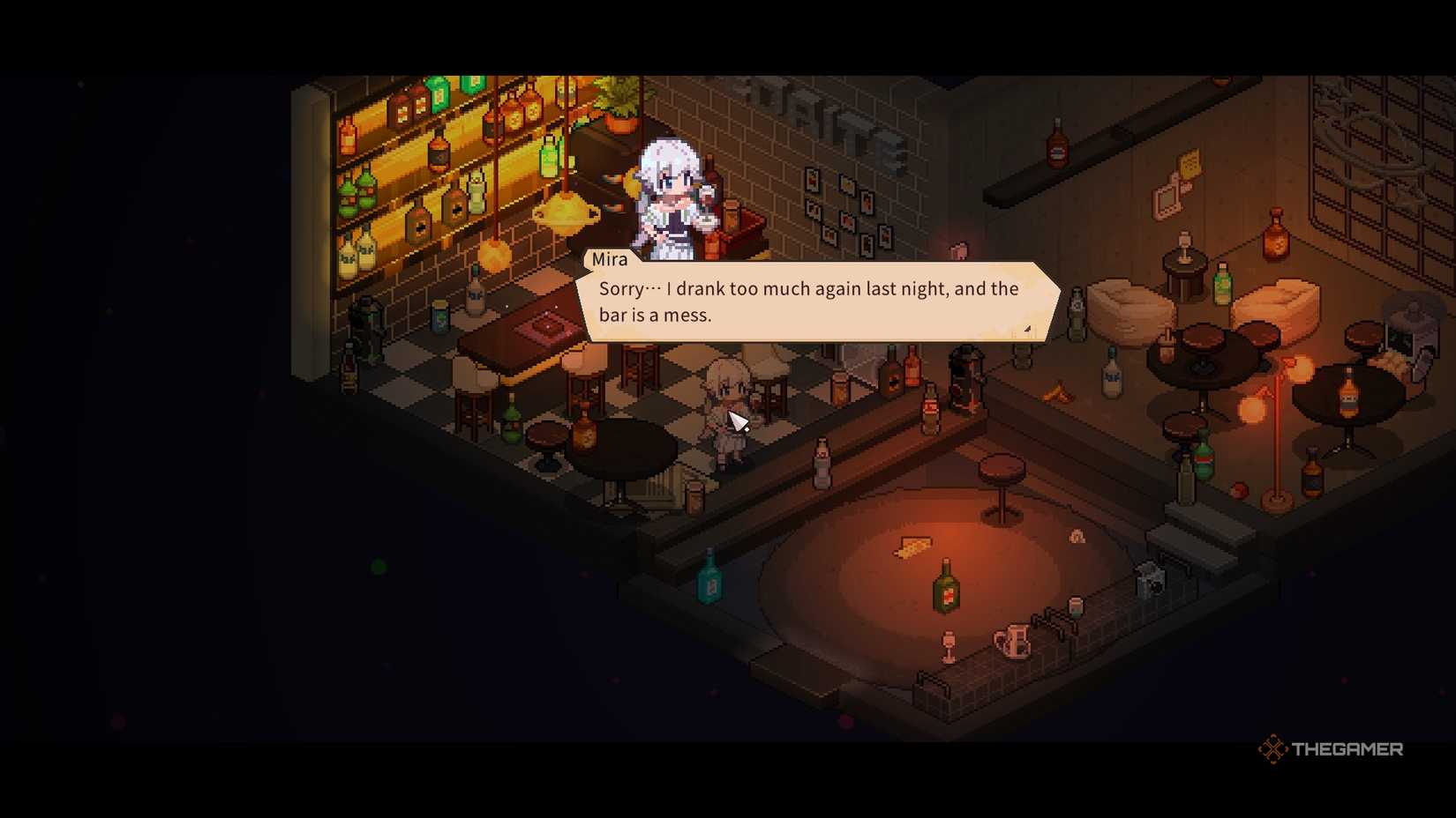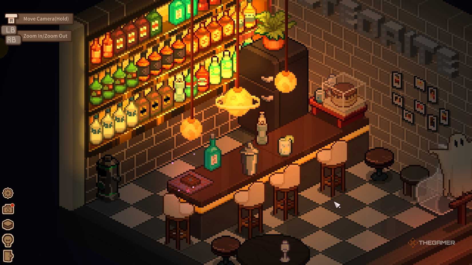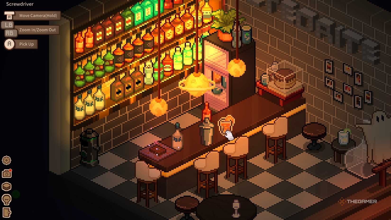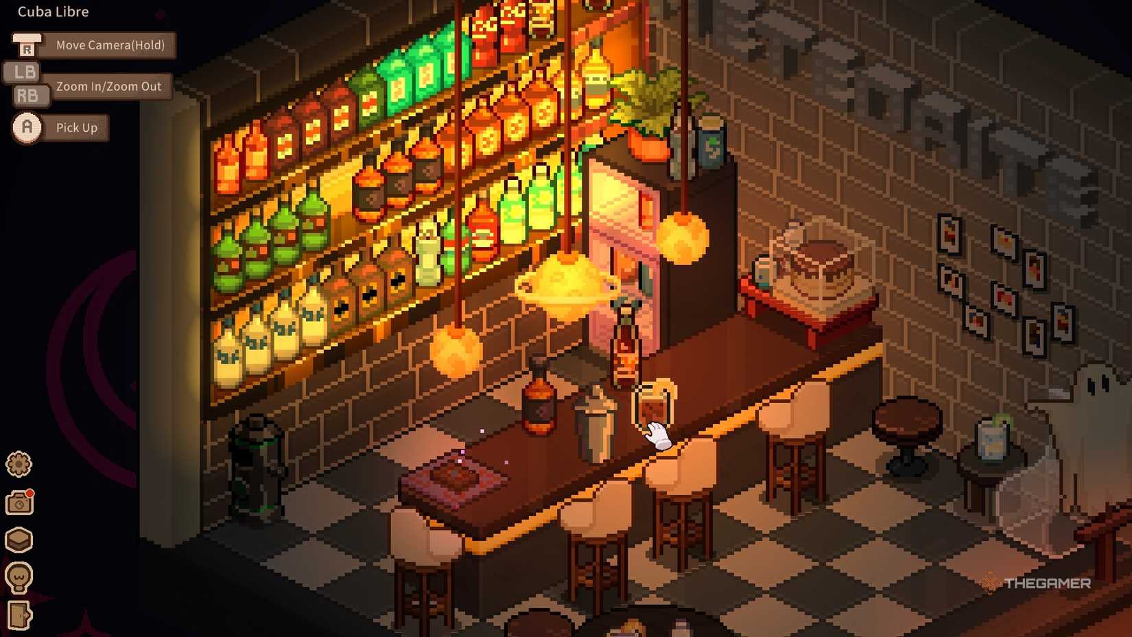 内部には、ピックアップするゴミ、戻すボトル、セットアップする楽器がいくつかあります。それがすべて完了したら、できますカクテルを作り始めます。バーにはaがありますカクテルシェーカーそしていくつかタロットカード。各カクテルを作るには、次の手順に従ってください。