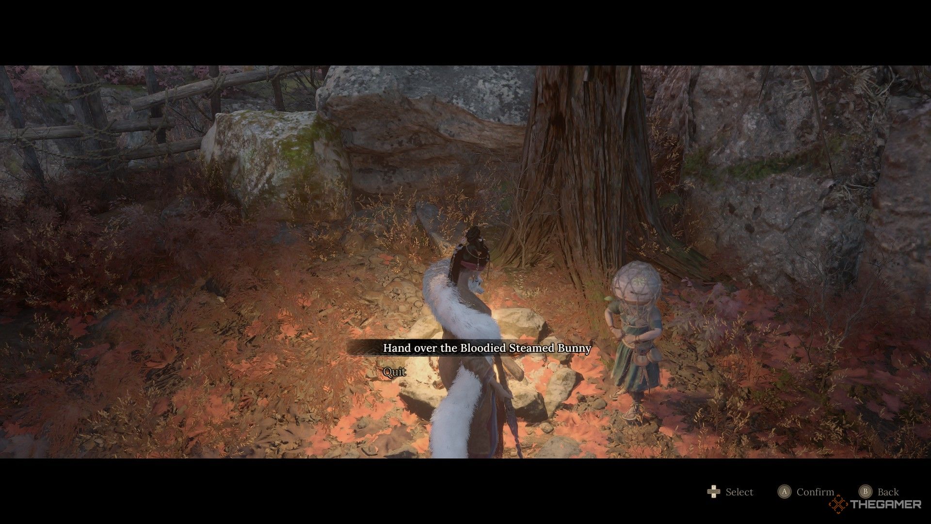 血まみれの蒸しバニーパンを彼に与えます。彼がこのアイテムを与えられた後、あなたはできますエリアをリセットします休む(または旅行)ボロボロの紙を見つけてください彼の代わりに。