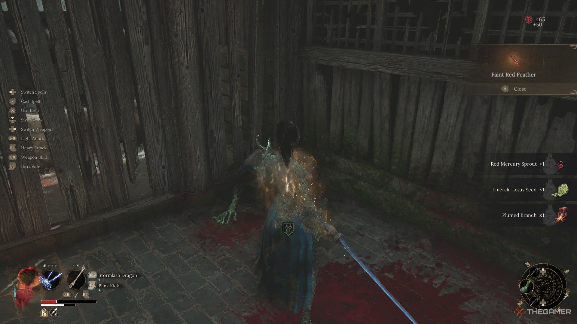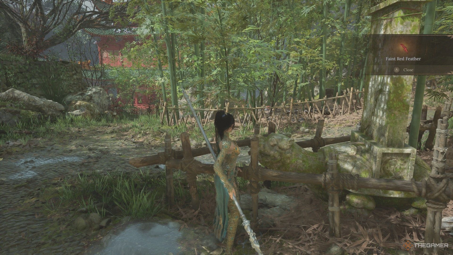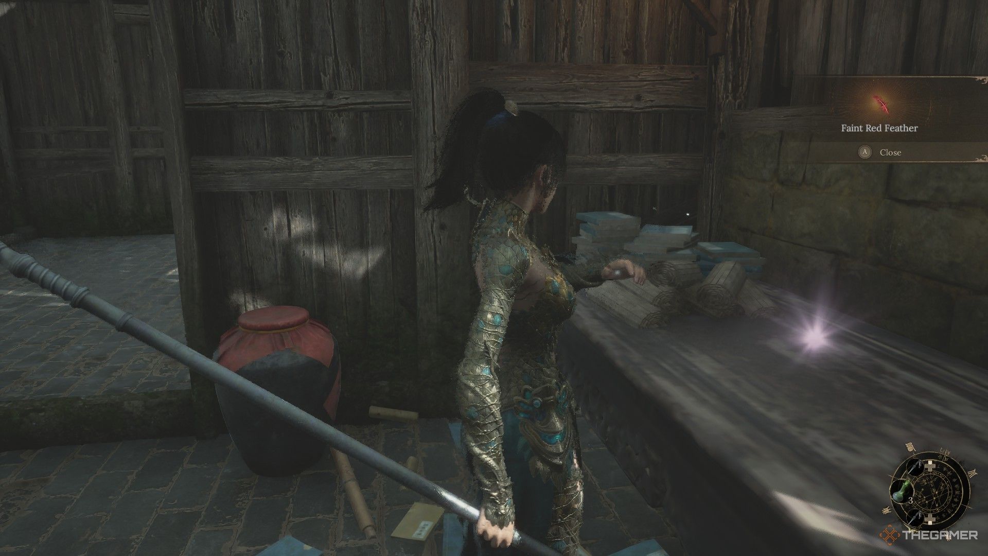 ライトゼン寺院の神社の隣で、かすかな赤い羽を拾うことができますジャーの敵を倒しますオープンハウス内。 |