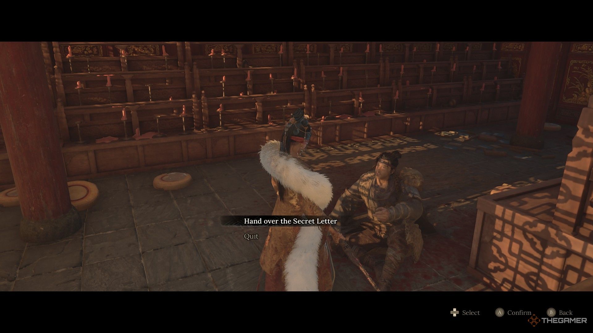 秘密の手紙ができたら、できますZhenwu Antechamberに行きます。リー・デンゴーは神社の左側に座っています。彼と話してください、彼の対話を使い果たす(これは2つの対話インスタンスであるはずです)、そしてあなたは彼に秘密の手紙を与える(またはそうでない)。これにより、彼の探求の結果が決まります。