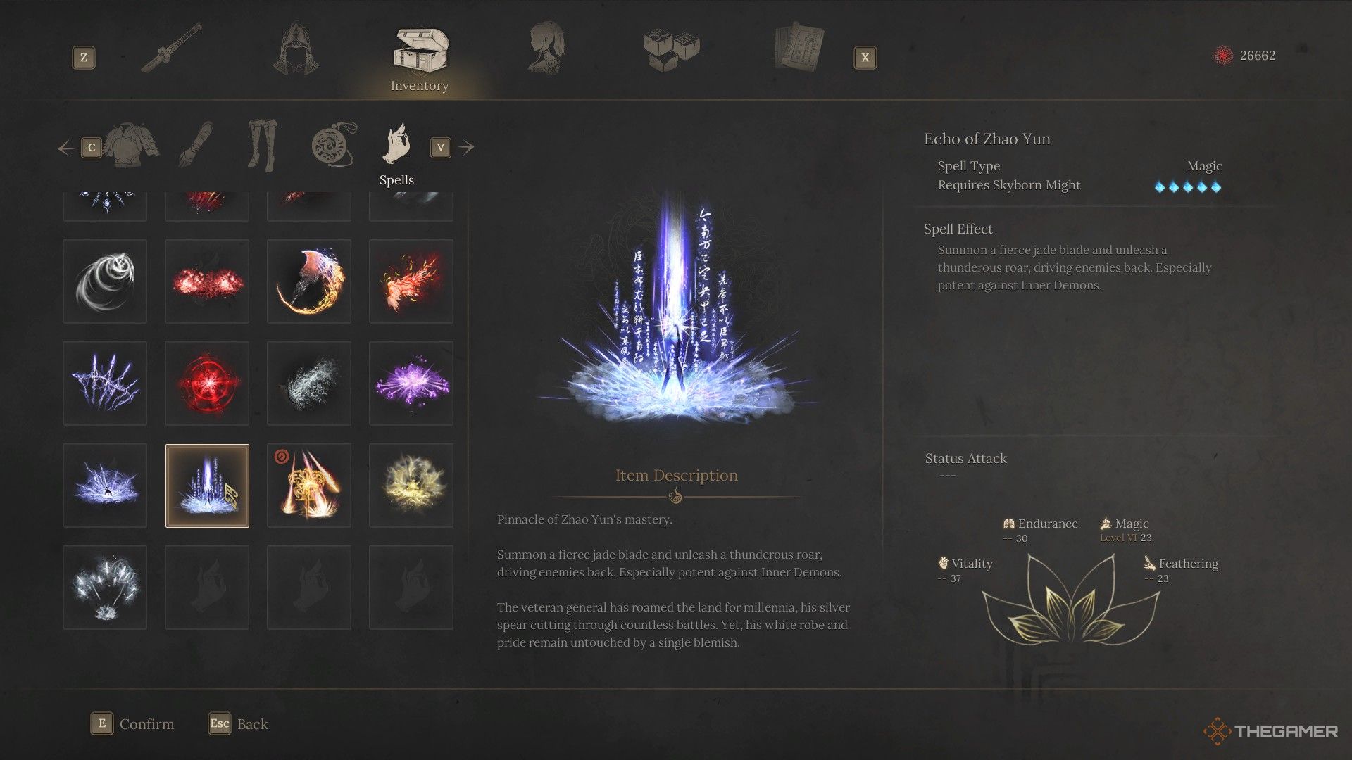 Zhao Yunのエコー | 5 | 魔法 | エーテルの剣を作成し、周辺地域のすべての人にダメージを与えるための短い充電の後、光を呼び出します。 | ボーキャピタルに到達した後に得られ、その後、鳥類の長老であるZhao Yunを倒すために鳥類の住居に戻りました。 |