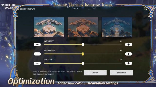 - 明るさ、飽和、コントラストのために、新しい色と視覚的なカスタマイズ設定がゲームに追加されています。
