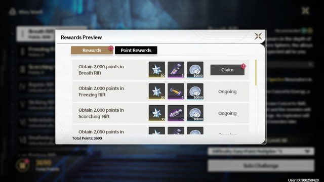 獲得したポイントに応じて、アストライト、expマテリアルなどの報酬を獲得できますシェルクレジット。必要があるリフトごとに少なくとも2,000ポイントを獲得します報酬の最初のバッチを獲得するため。ただし、2番目の報酬タブをチェックすると、イベント中に合計で積み上げたポイント数に応じて、さらに多くの報酬を獲得できます。