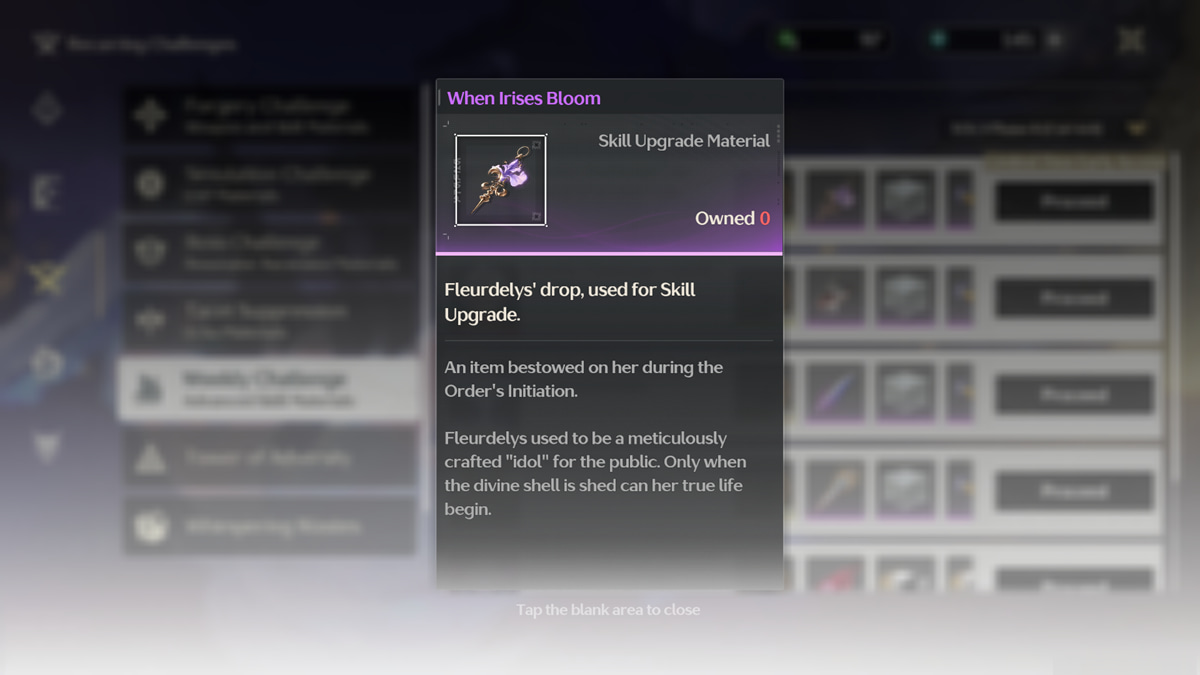 アイリス・ブルームが毎週のボスの素材であり、リナシータでフルードリスを倒すことで得られることができます。