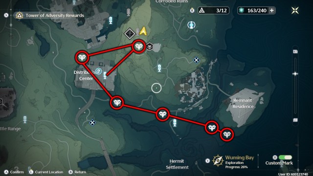このルート上のすべてのターゲットを通って接続ラインを描きましたが、旅をより速くするために速く旅行することができます。あなたが徒歩でいるなら、あなたを確認してください最初のマーカーでタセットフィールドエンカウンターを与える十分なスペースだからあなたは戦いを引き起こしません。