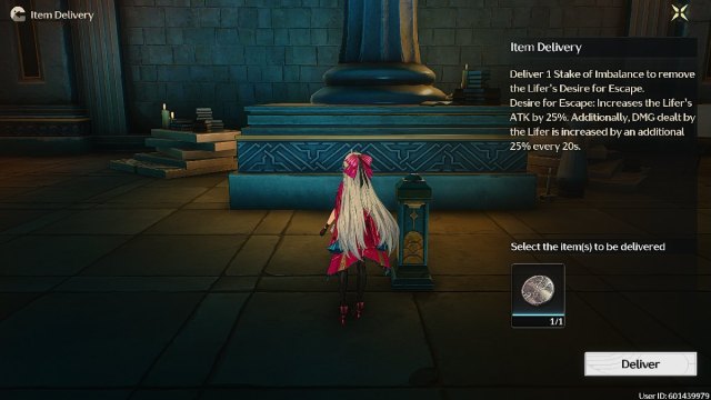 あなたは、生涯の後ろの部屋の隣の部屋に向かい、水色のハイライトでマークされた床に横たわっている不均衡の杭を拾うことができます。敵に対処し、それを置いて、それを脱出するバフへのライフの欲求を取り除き、それを大きなダメージを与えます。