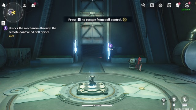 人形がその上に立つと、出口をブロックする赤いレーザーが消えます。これで、「e」キーを押して人形の制御を停止できます。Yinlinとして部屋を出ることができます。