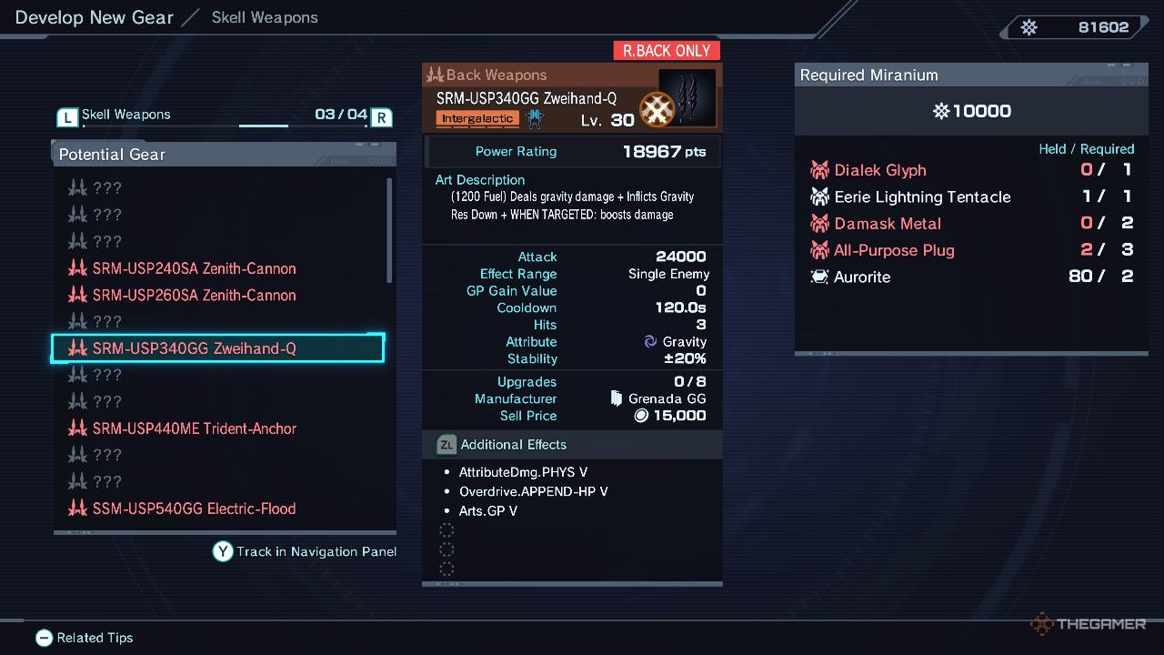 ズウェイハンドは3ヒットのコンボを行い、重力と重力の損傷のみであると主張しているにもかかわらず、重力と物理的損傷の両方を扱っています。つまり、両方の属性の増強を通じて、その損傷をさらに高めることができます。