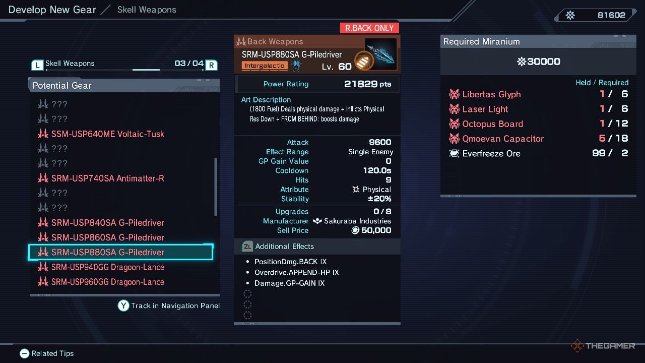 もう1つの信じられないほど強力なバック武器、Gバスターはわいせつです。デフォルトでいくつかのスケルに装備されているだけでなく、レベル30バージョンでさえ、ショップで購入できるバージョンは非常に強力であるため、ゲームの多くを通してあなたを運ぶことができます。彼らは本当にそれほど強く、彼らが取り上げる2つのバックスロットの価値があります。