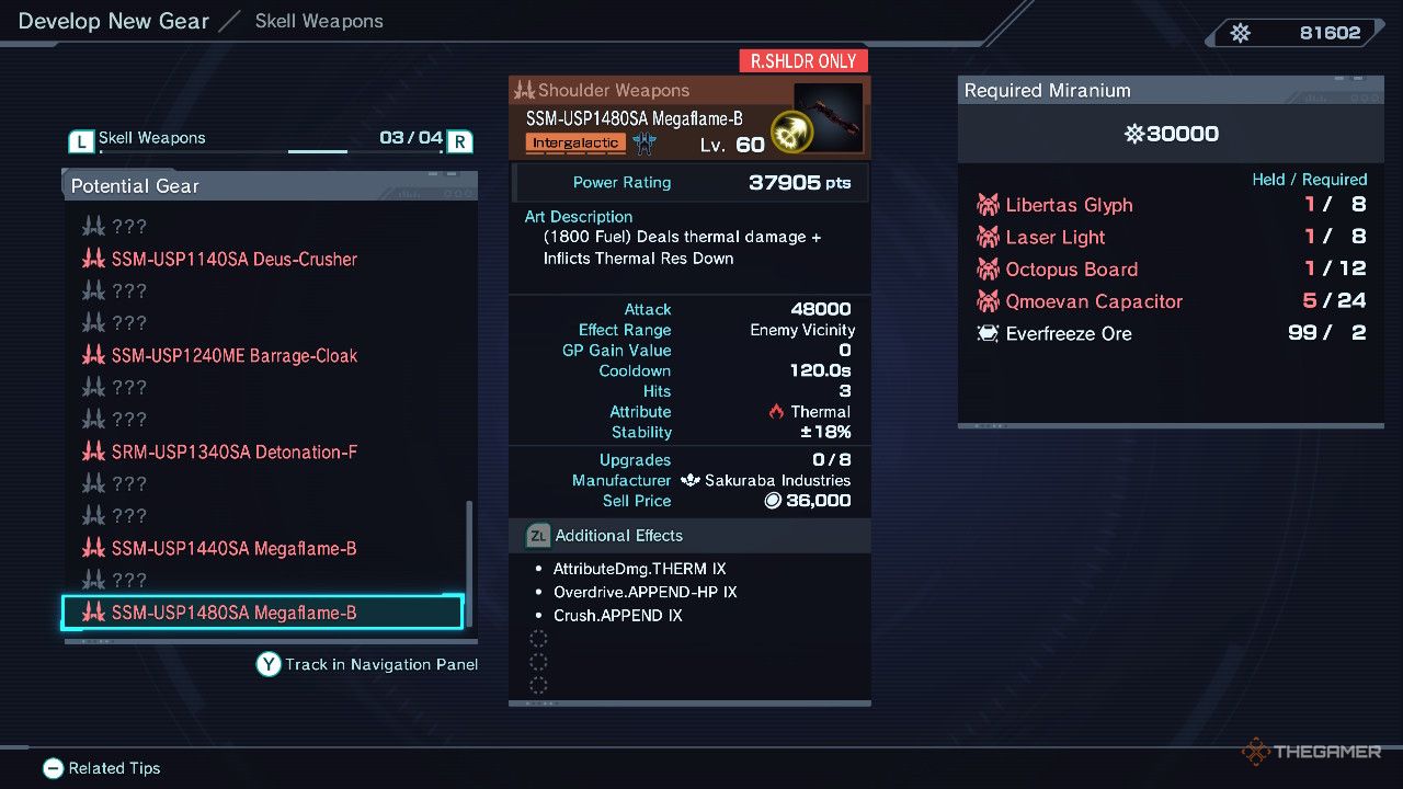 スケルスーパーウェアポンのもう1つのMegaflame-Bは、コメラ強力なもう1つの武器です。両方の肩のスロットを取り上げて、Megaflame-Bは、複数のヒットのために周囲のすべての敵に大量の熱損傷を与え、フォローアップの熱攻撃に対してさらに弱くします。