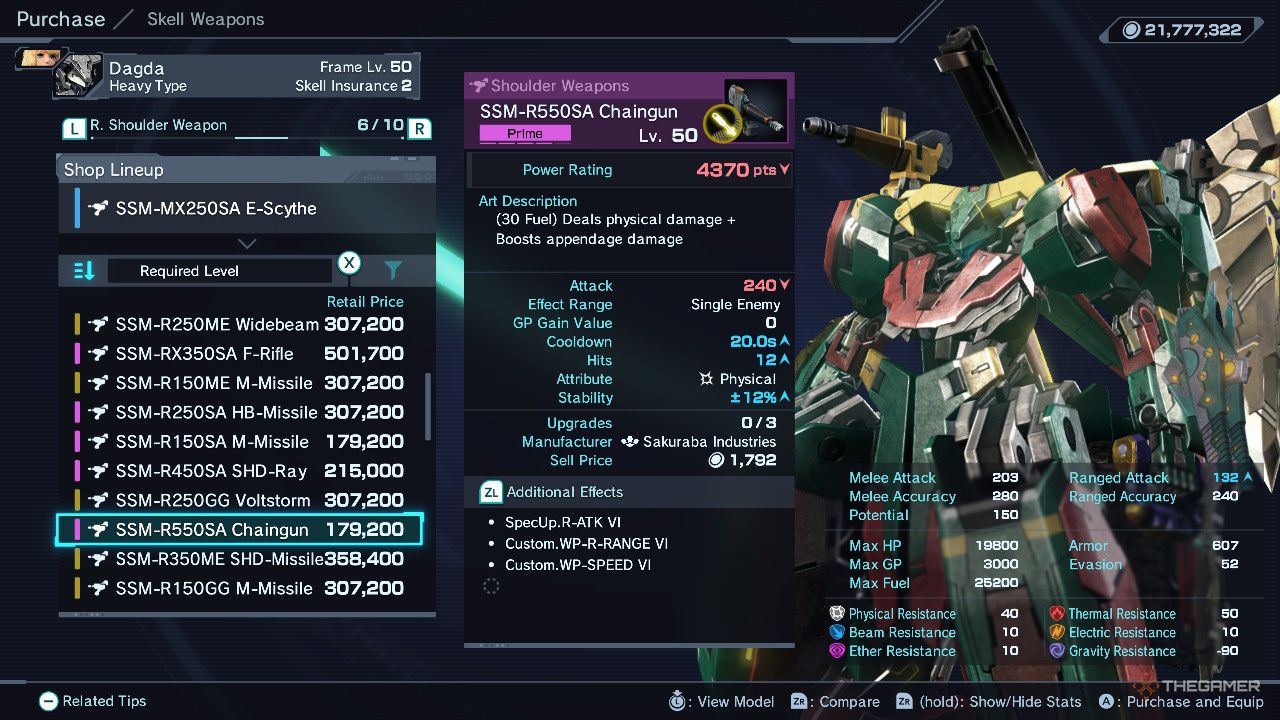 肩の武器に来ると、あなたは選択に甘やかされているため、どちらを選択するかを正確に絞り込むことがさらに困難になります。 1つの肩のスロットを占めるだけの素晴らしい選択は、Chaingunです。物理的なダメージのみを扱うだけですが、それが優れているのを助けるために他の多くの特徴があります。