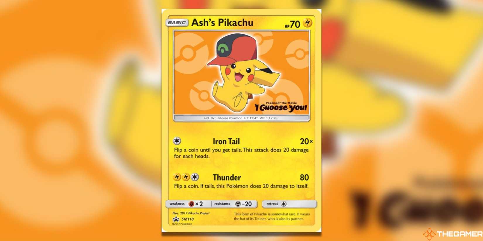 SM110バージョンは、最も愛らしいバージョンの1つであり、ピカチュウの明るい笑顔と、明るく色のついたポークボールが点在する陽気なオレンジ色の背景があります。ポーズとカラーの選択は、これらのカードが際立っている主な方法であり、このバージョンはトーテムポールで驚くほど低いです。