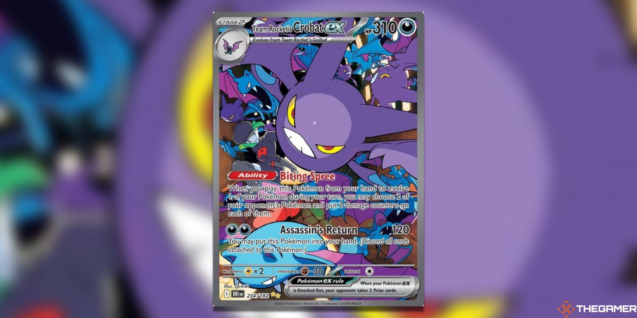 クロバットは、運命のライバルの特別なイラストレアのいずれかに登場する最も過小評価されているポケモンかもしれません。このアートワークは、ポケモンのクールな要素をさらに高くしています。クロバットの珍しい存在をバックグラウンドで他のゴルバットとクロバットと組み合わせると、セットに最も見事なカードの1つがあります。