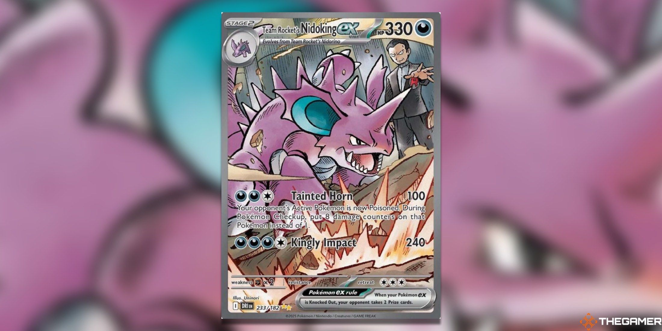 ニドキングは、ポケモンTCGセットの中で最も高価なカードの中で見つけるもう1つの珍しいポケモンとして、クロバットの足跡をたどっています。このカードの驚くほど高い早期評価にもかかわらず、ニドキングの違いを考えると、その包含はテーマ的にフィットします。