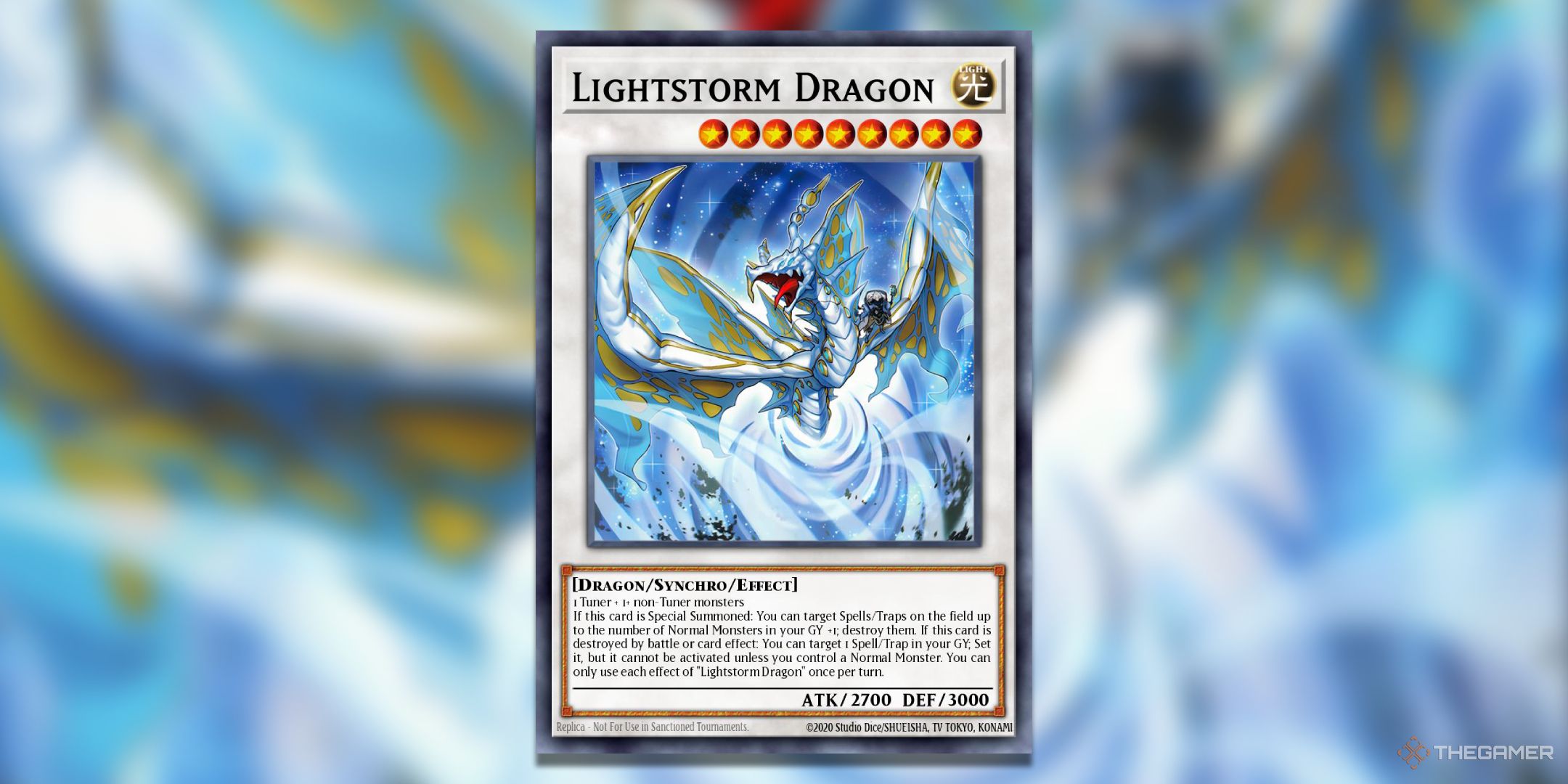 すべての青い目の白いドラゴンがレベル8であるため、レベル9のシンクロモンスターを引き出すことはそれほど難しくありません。 Lightstorm Dragonはかなり簡単に作成でき、相手の背景に対処する方法を提供できます。