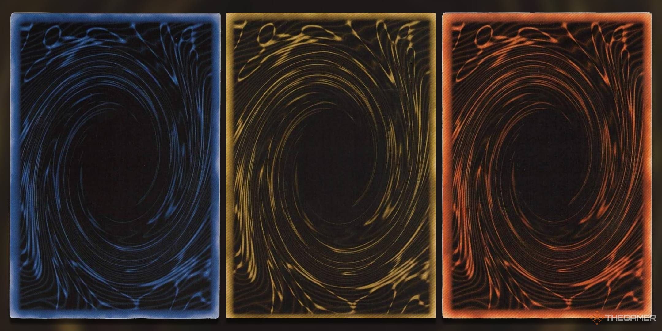 この禁止されたルールのテキストに加えて、カードにはユニークな色も備わっています。オベリスクトーメントルは青、翼のあるドラゴンは黄色、スリファーはスカイドラゴンが赤です。これらの色はカードバックに拡張され、彼らがデッキにいる間にそれらを簡単に識別できるようにする。